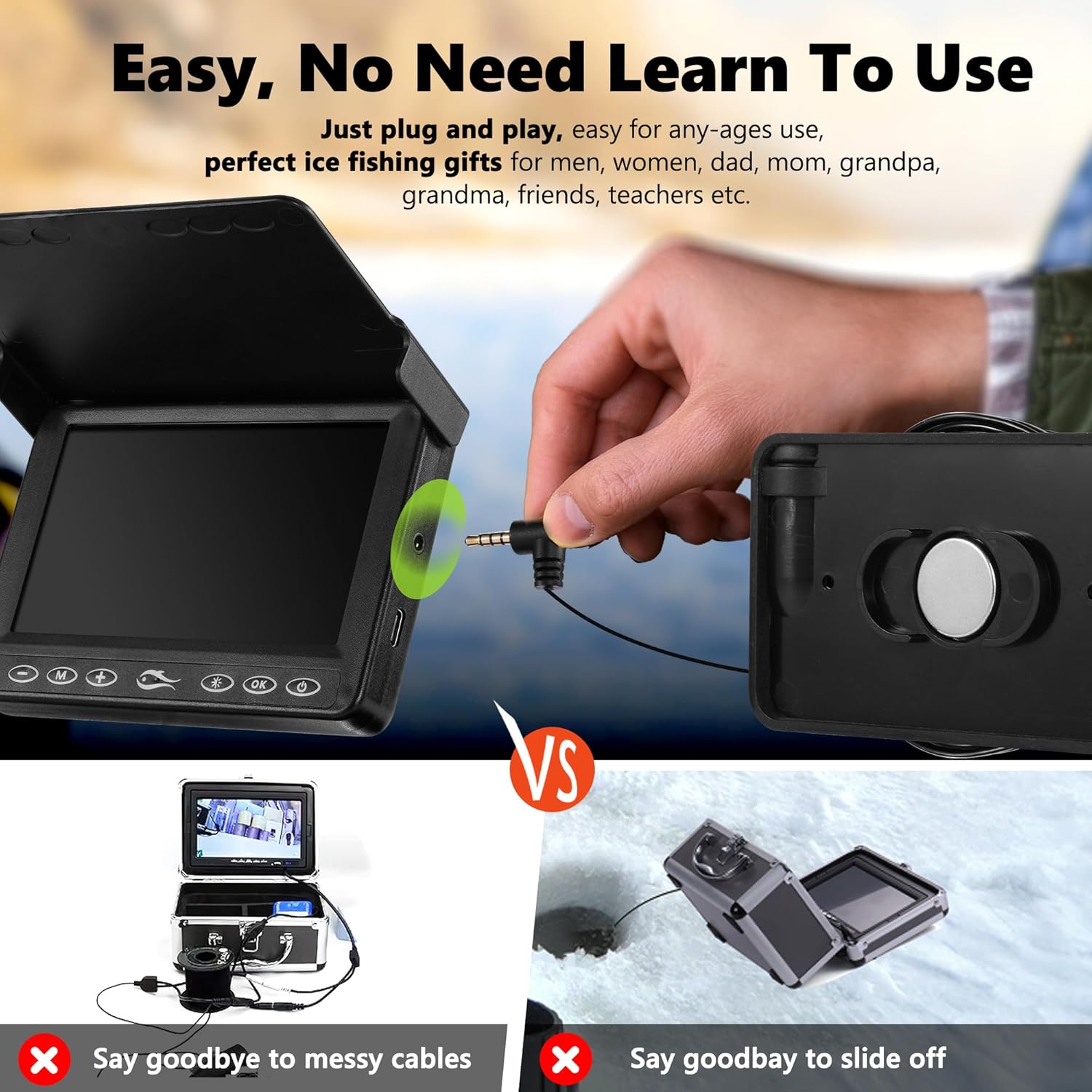 Waterproof design ideal for ice fishing, lakes, and boats.