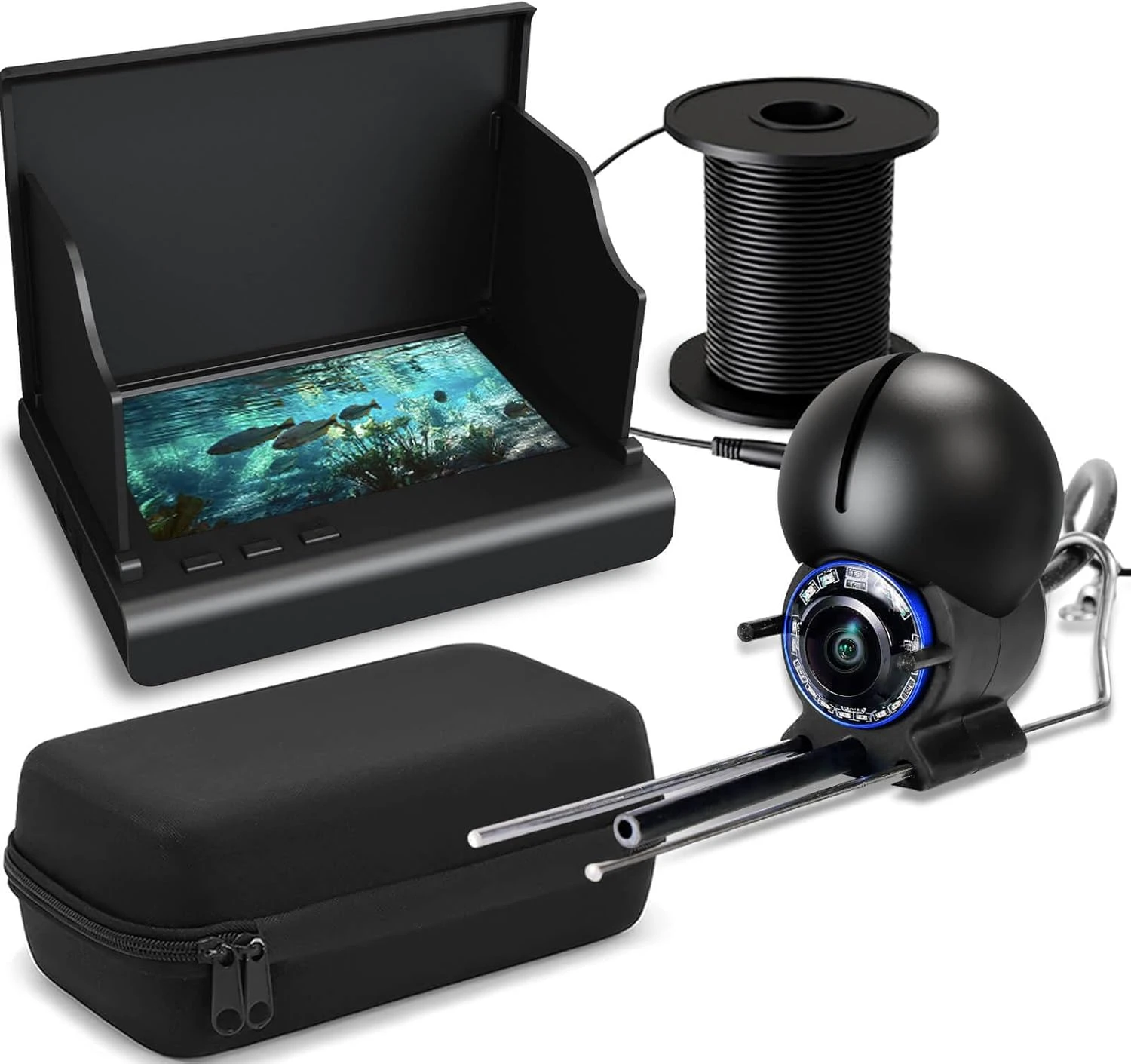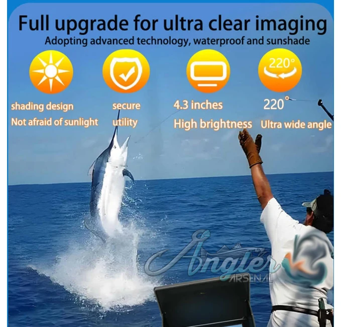 The 4.3-inch Underwater Fishing Camera offers a 220° wide-angle view for a comprehensive look at the underwater environment. With night vision and 12 LEDs, it provides clear footage even in low light. Ideal for ice, lake, boat, and kayak fishing, this camera is waterproof and durable, ensuring a reliable fish-finding experience.