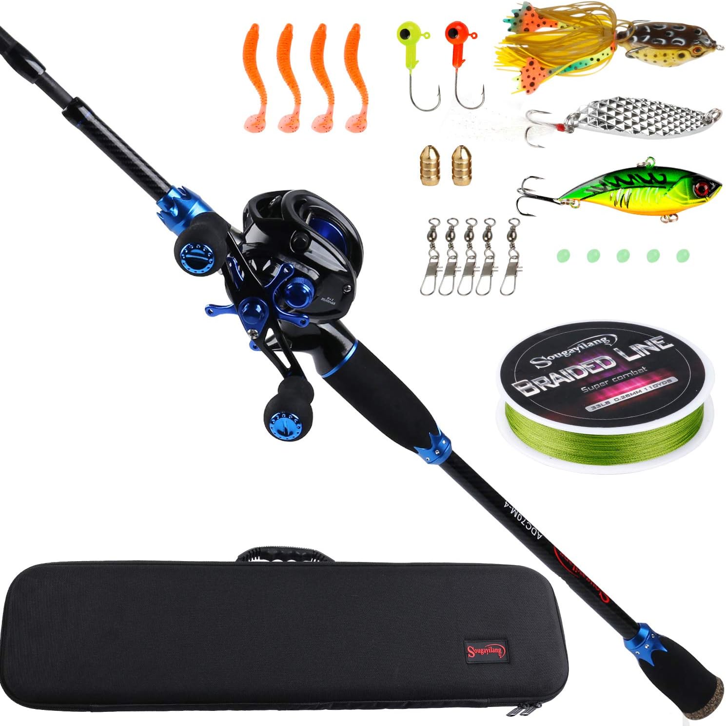 The Sougayilang Baitcasting Fishing Combo offers a lightweight yet durable design, perfect for freshwater fishing. Featuring a high-speed reel and a strong carbon fiber rod, it delivers smooth performance and control. Ideal for anglers looking for a portable and reliable fishing setup.