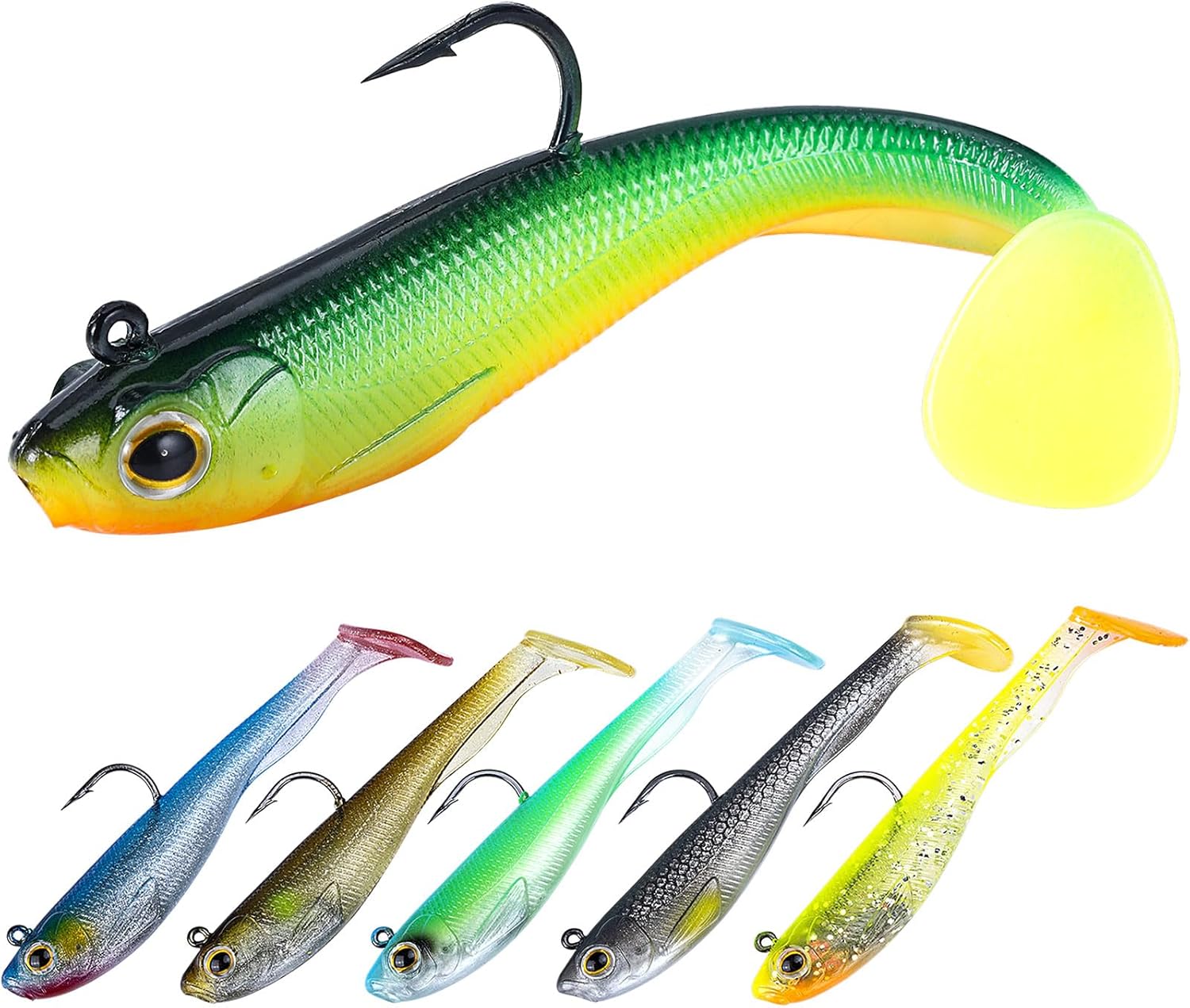 Pre-rigged swimbaits designed for easy and effective fishing. Paddle tail action mimics real baitfish to attract more strikes. Ideal for bass, pike, crappie, and other freshwater and saltwater species. Durable and lifelike design ensures long-lasting performance.