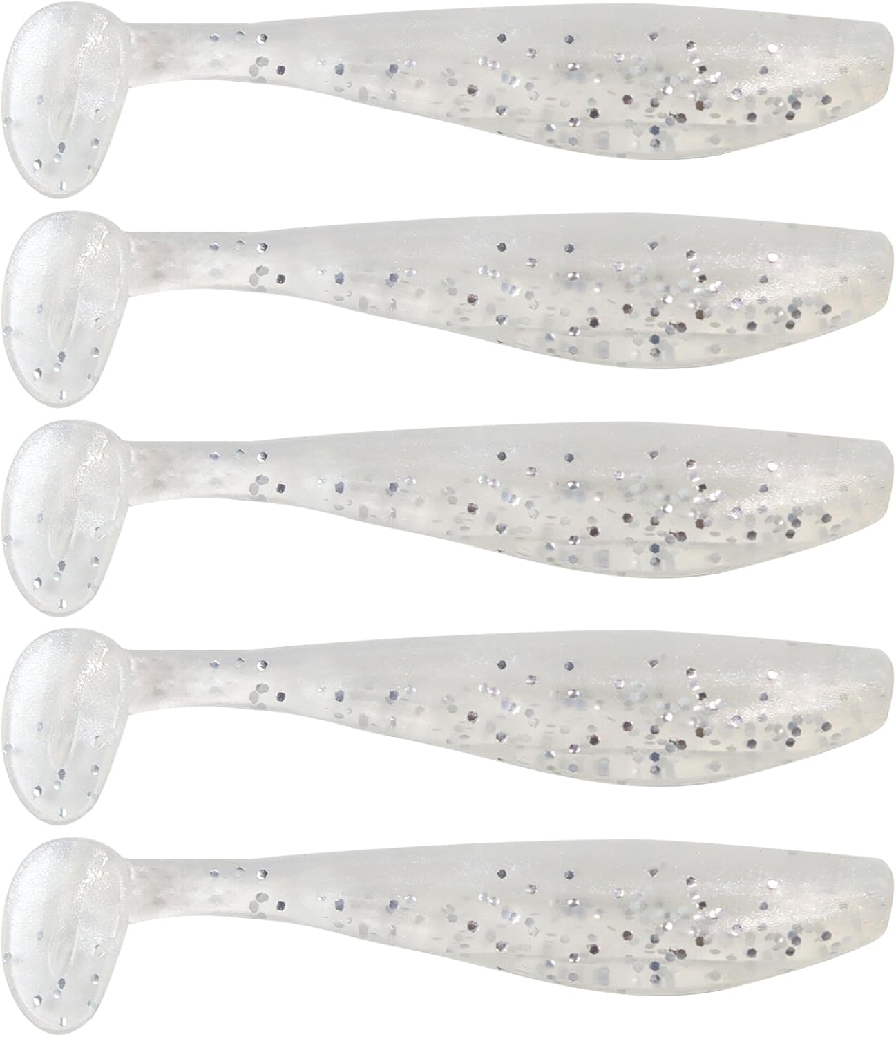 This soft fishing lure kit includes paddle tail swimbaits in five mixed colors.
