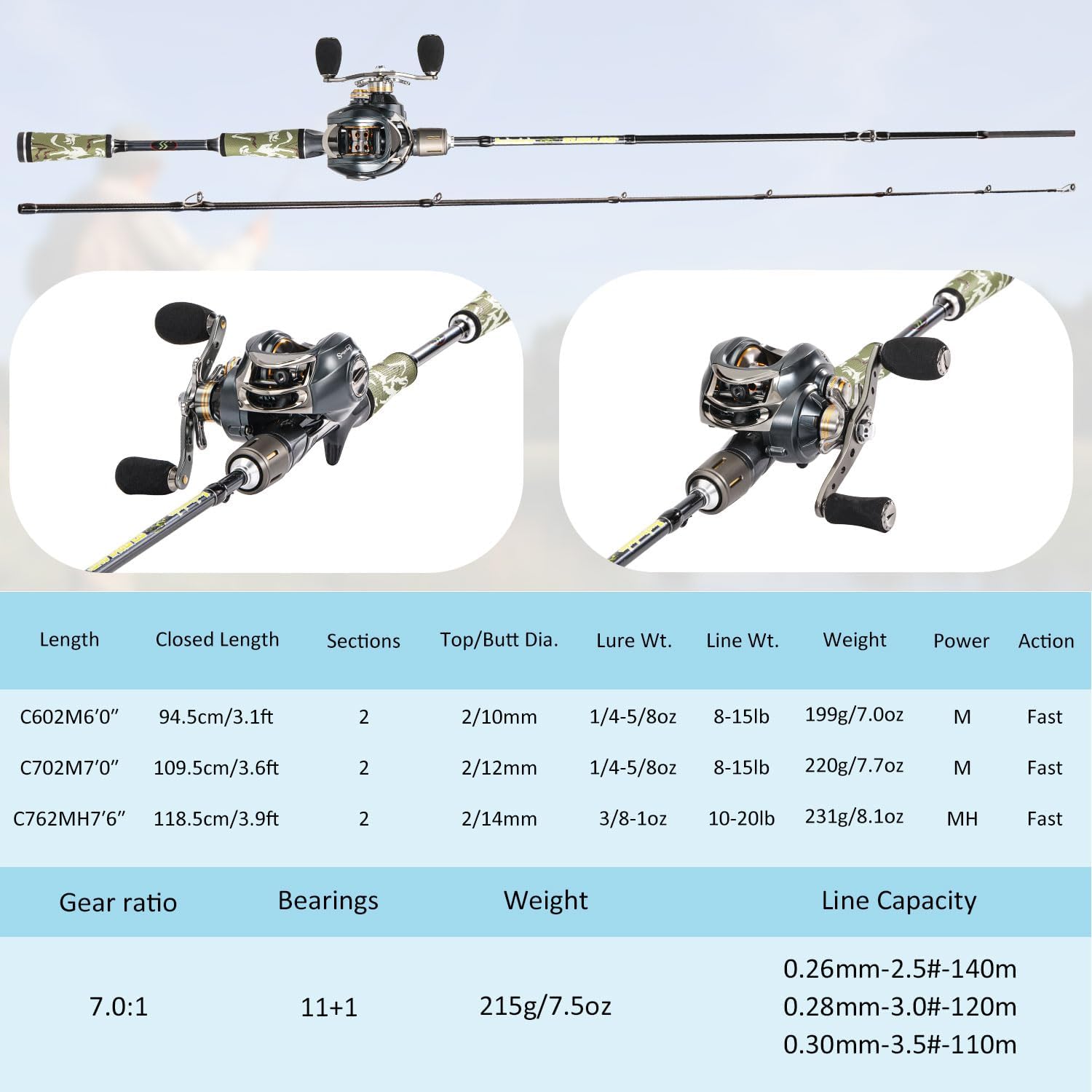 Perfect for bass and trout fishing with a durable and lightweight build.