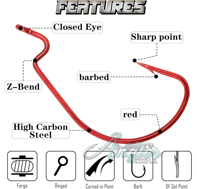 XFISHMAN Drop Shot Hooks by Angler Arsenal are perfect for bass fishing.