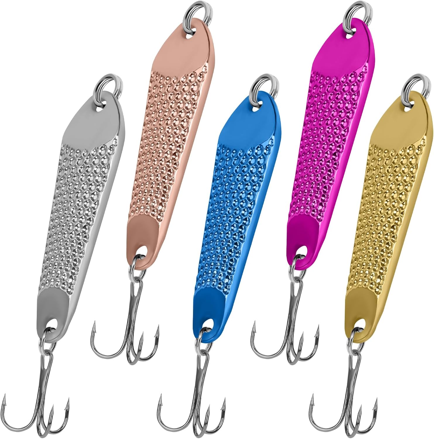 Durable hard bait jigging spoons for effective casting and retrieving.