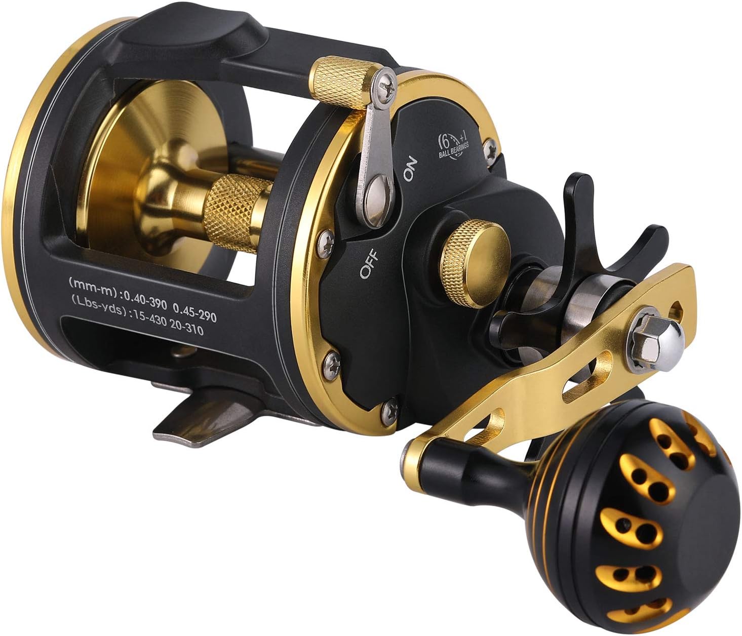 The Sougayilang Level Wind Trolling Reel offers smooth performance for saltwater fishing. Built for durability, it ensures reliable drag control for big catches. Perfect for anglers targeting sea bass, grouper, and other ocean species.
