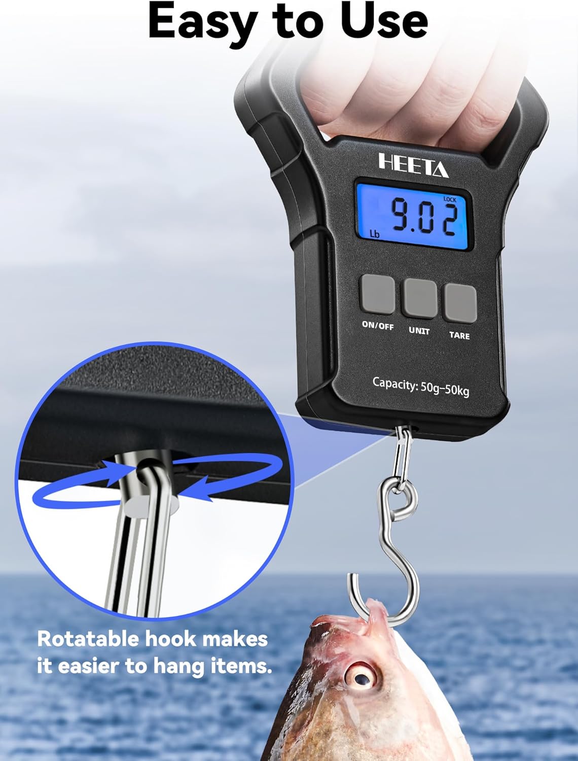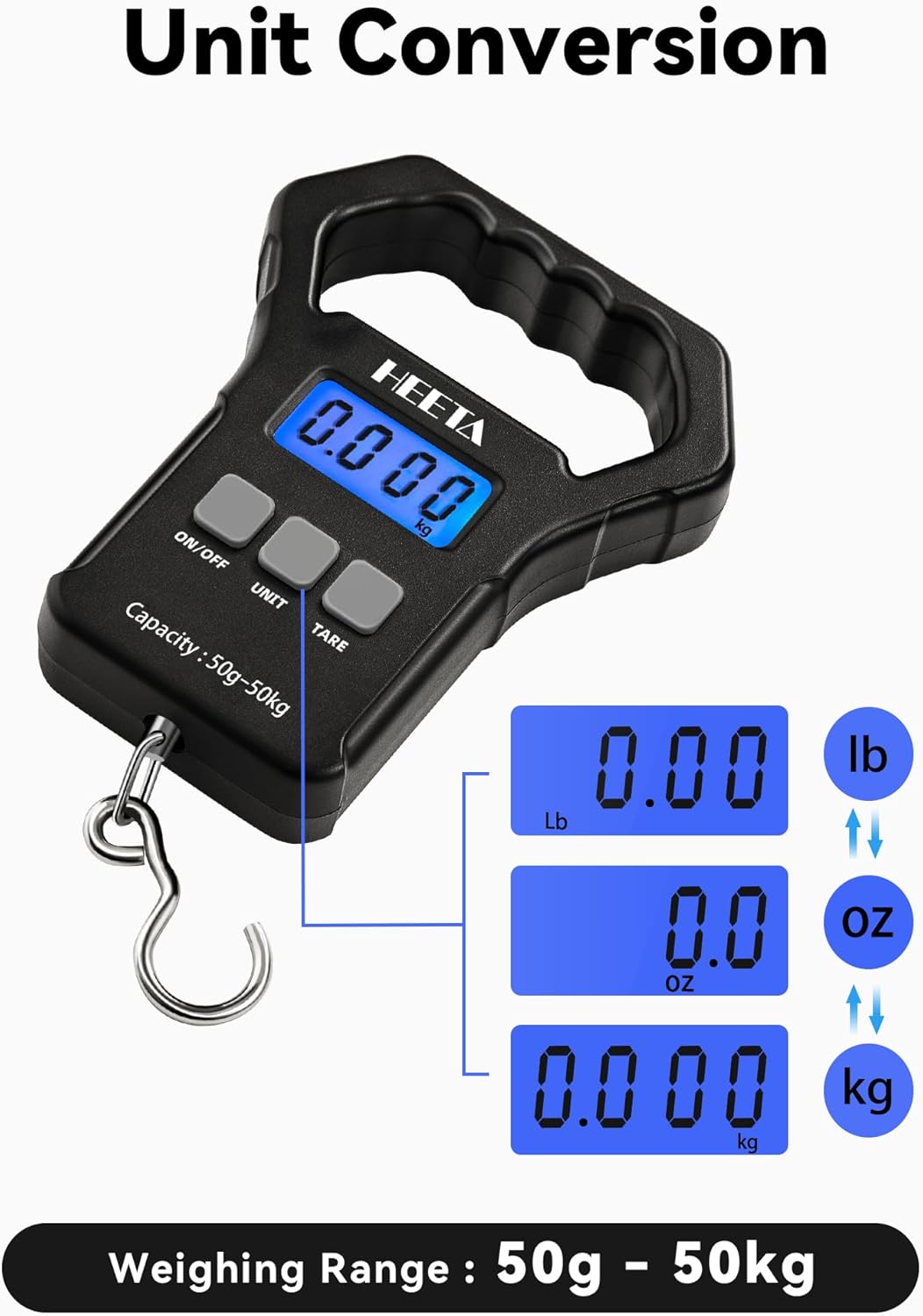 HEETA Digital Fish Scale offers accurate weight measurement up to 110lb.