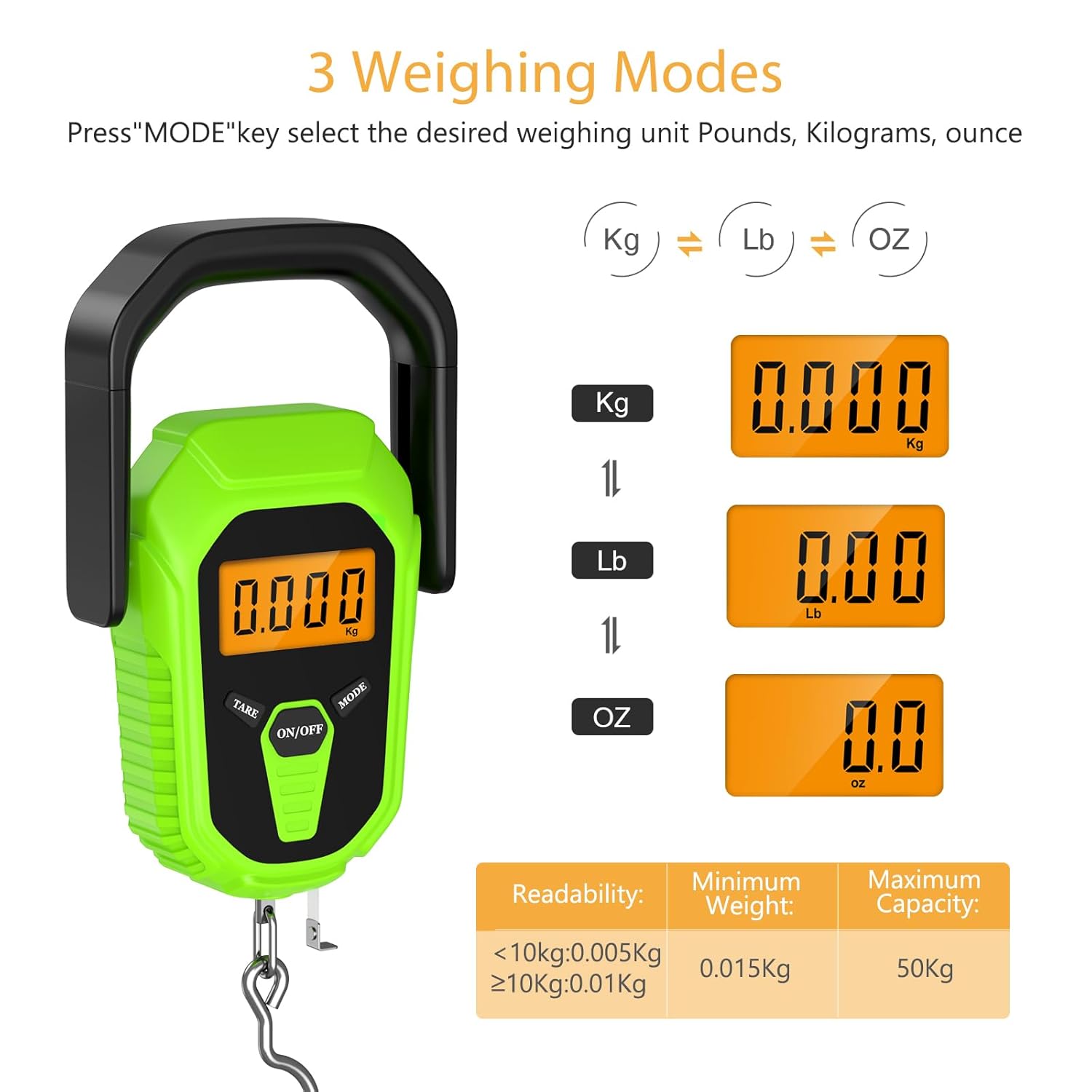 Supports up to 110lb, ideal for fishing or luggage weighing needs.