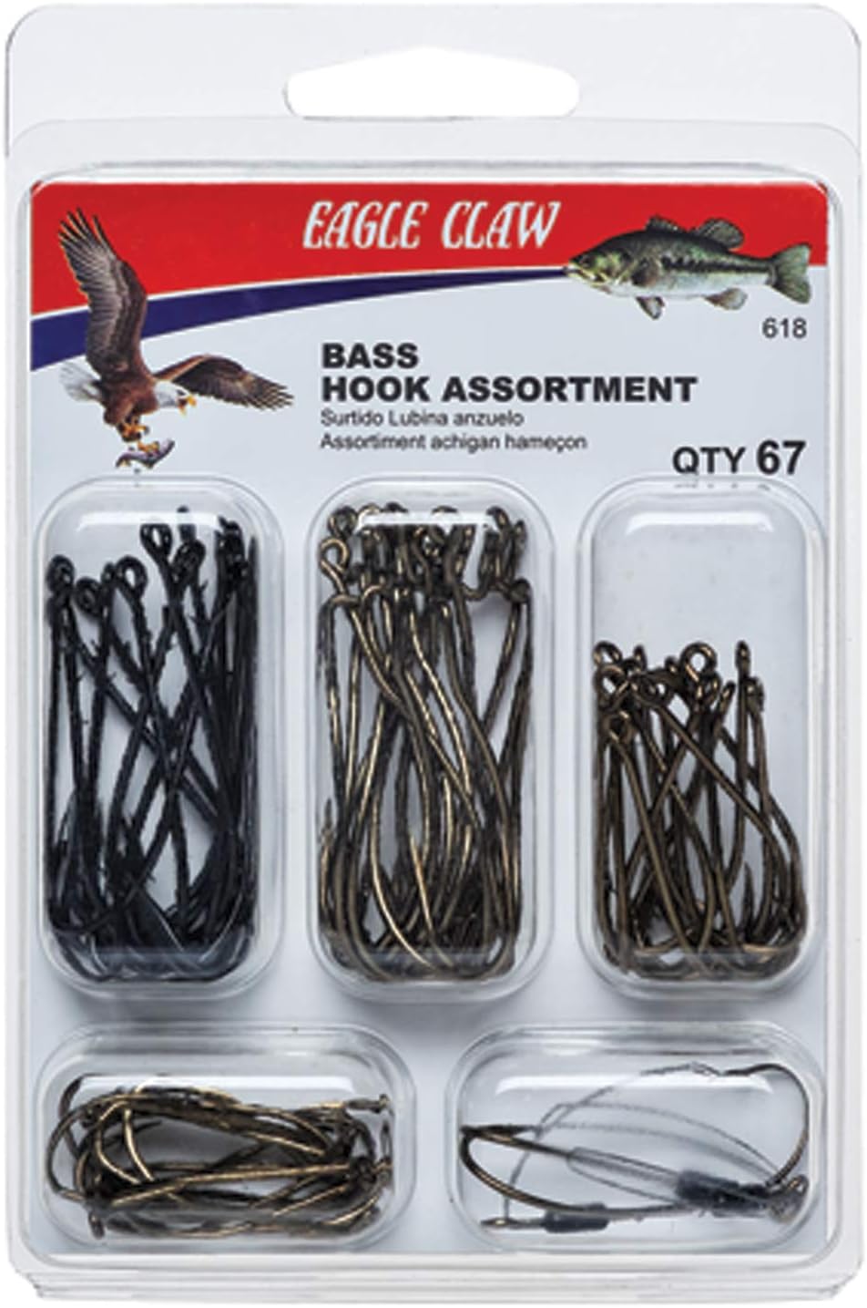 High-quality Eagle Claw bass fishing hooks designed for freshwater fishing.