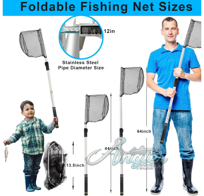 Lightweight and foldable fishing net for easy transport and storage. Extendable aluminum handle with a soft EVA grip for comfort. Built-in length scale for quick fish measurement. Fish-friendly mesh ensures safe and secure catch-and-release.
