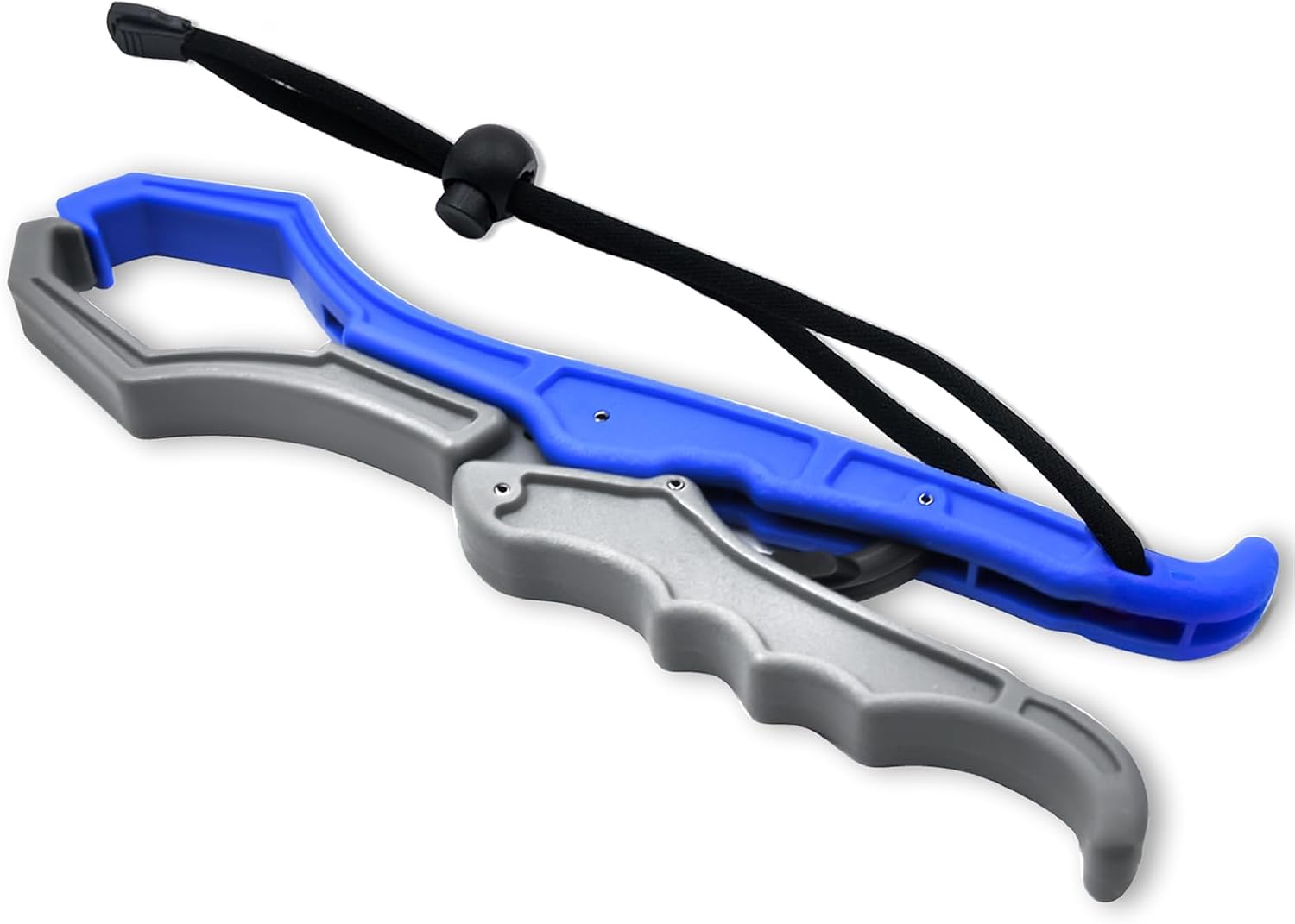 This lightweight floating fish gripper with a secure lanyard ensures easy handling of caught fish. Designed for saltwater and freshwater use, it provides a firm grip, making it an essential tool for fishing enthusiasts.