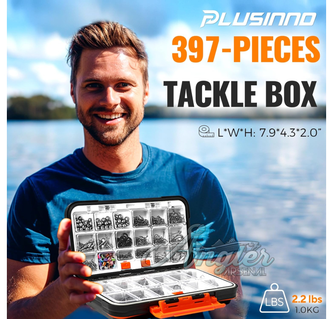 PLUSINNO Fishing Accessories Kit includes hooks, weights, jig heads, and swivels.