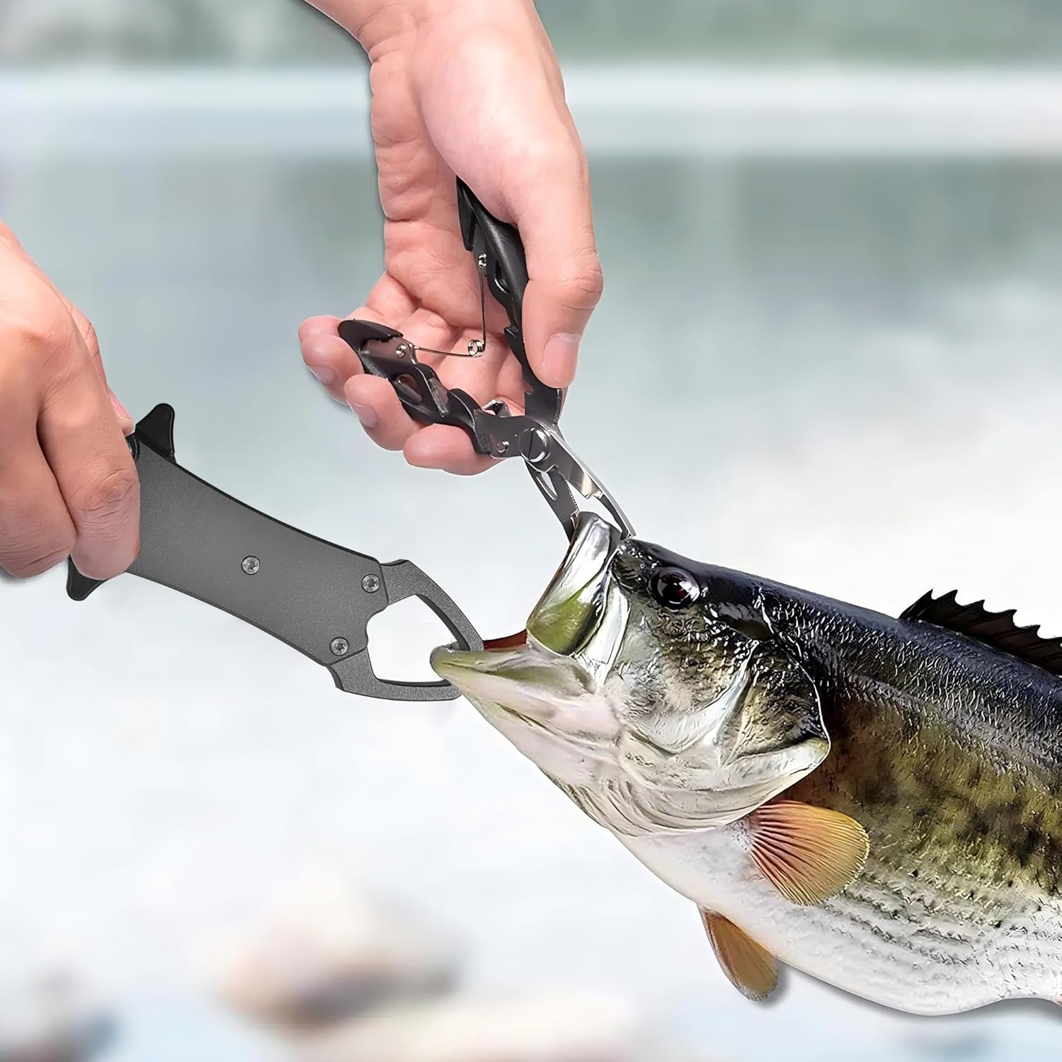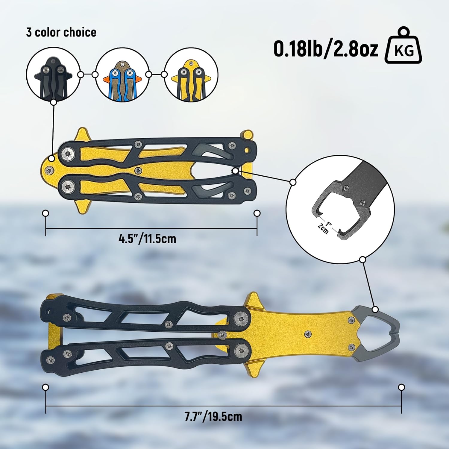 UEDGER Foldable Fishing Lip Gripper Tool by Angler Arsenal offers a portable and lightweight design for easy fish handling. Perfect for anglers, this aluminum alloy grip provides a secure hold for safe fish control. Ideal for freshwater and saltwater fishing.