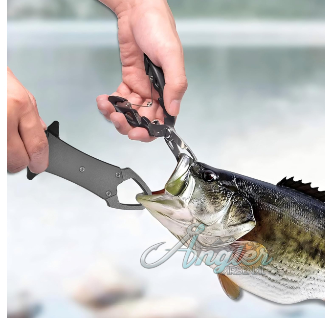 The Angler Arsenal Portable Fish Gripper Tool provides a secure hold while handling fish. Lightweight and compact design for easy portability. Ideal for anglers needing a reliable grip tool for safe catch handling. Durable construction ensures long-lasting use.