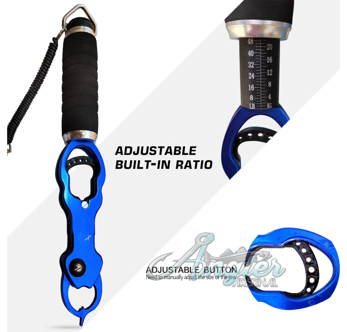 The 11 Inch Fishing Gripper with Scale and Lanyard by Angler Arsenal is designed for anglers who need a reliable and secure fish holder. This tool features a built-in scale with a max weight of 48 lbs, making it perfect for accurate weight measurements. The durable construction and secure lanyard ensure easy handling, while the portable design makes it ideal for on-the-go use.
