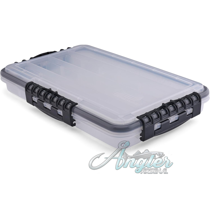 The Plano 3700 Series Waterproof Tackle Box from Angler Arsenal provides secure and versatile fishing gear storage. Features adjustable dividers for custom organization. Durable cam-action latches and O-ring seal ensure watertight protection. Perfect for anglers needing a reliable tackle solution.