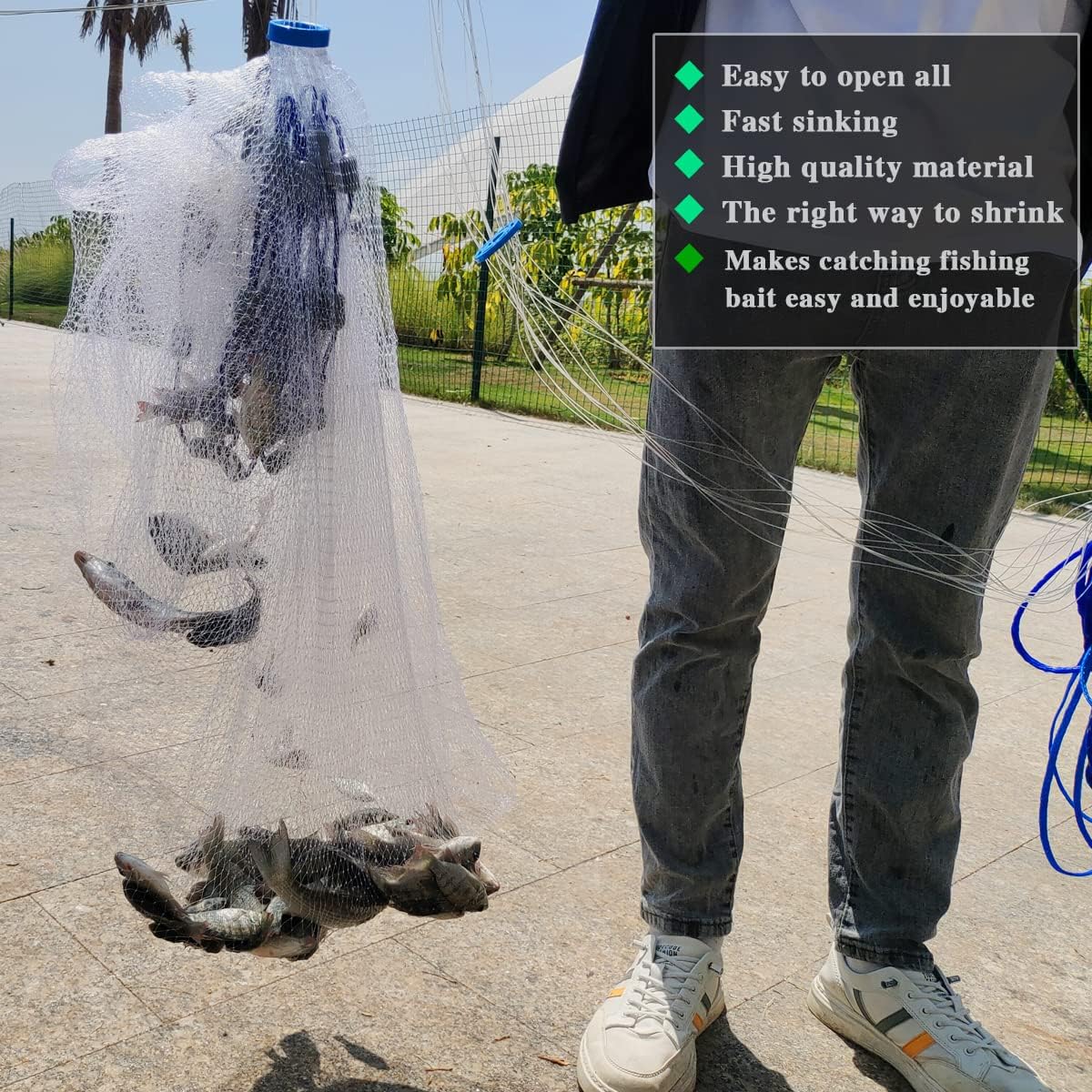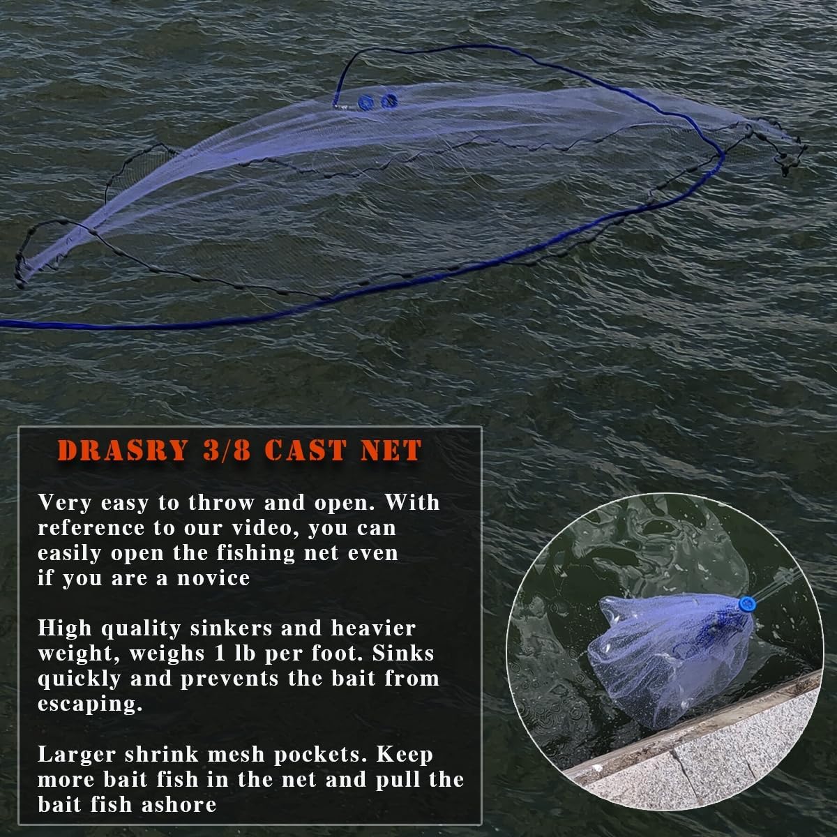 Drasry saltwater fishing cast net designed for easy bait capture.
