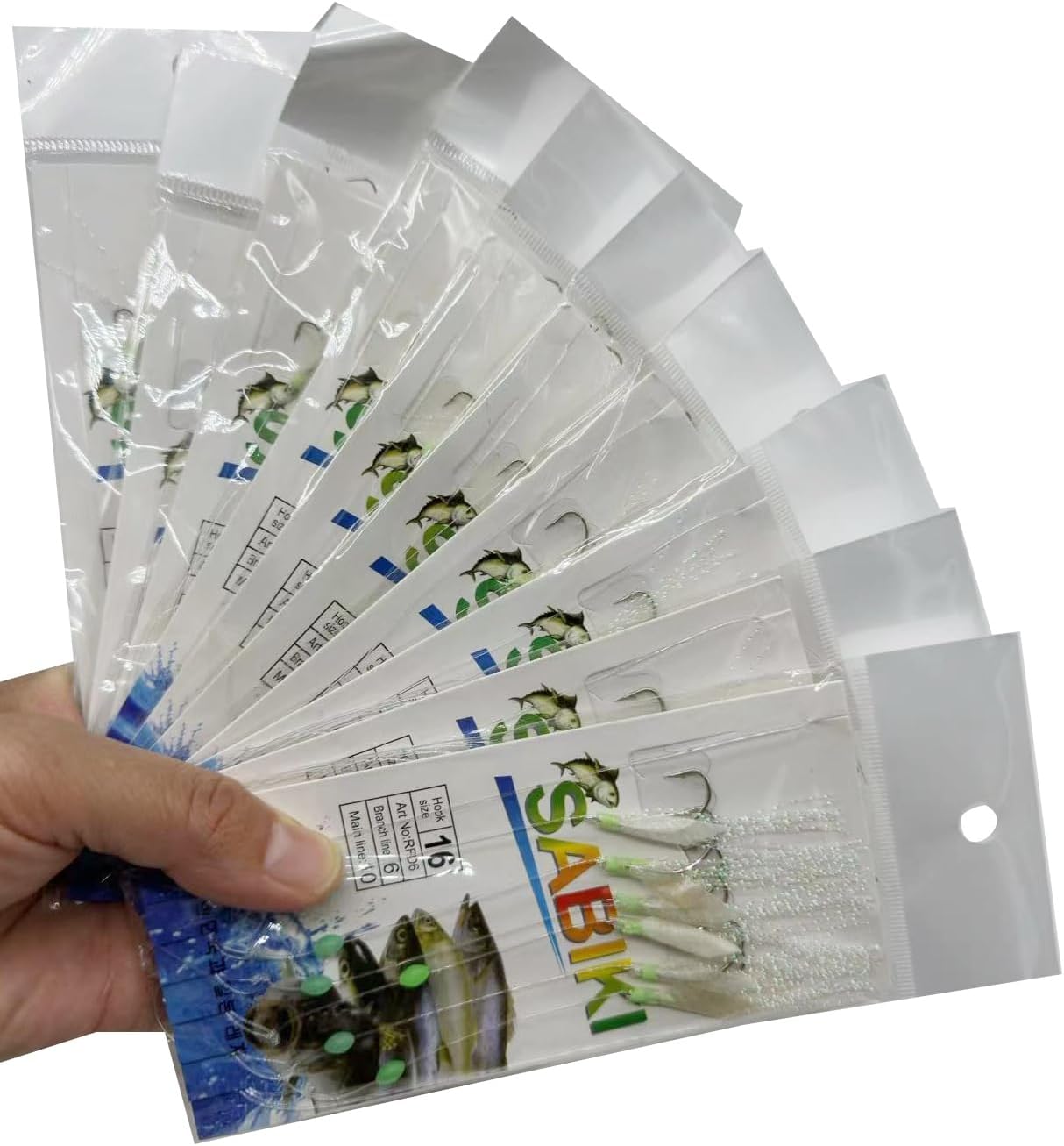 Glow Sabiki Rigs by Angler Arsenal feature 60 high-carbon hooks, designed for superior durability. Perfect for saltwater fishing, these rigs attract fish with glowing beads and are ideal for various species. High-quality materials ensure long-lasting use and reliable performance.