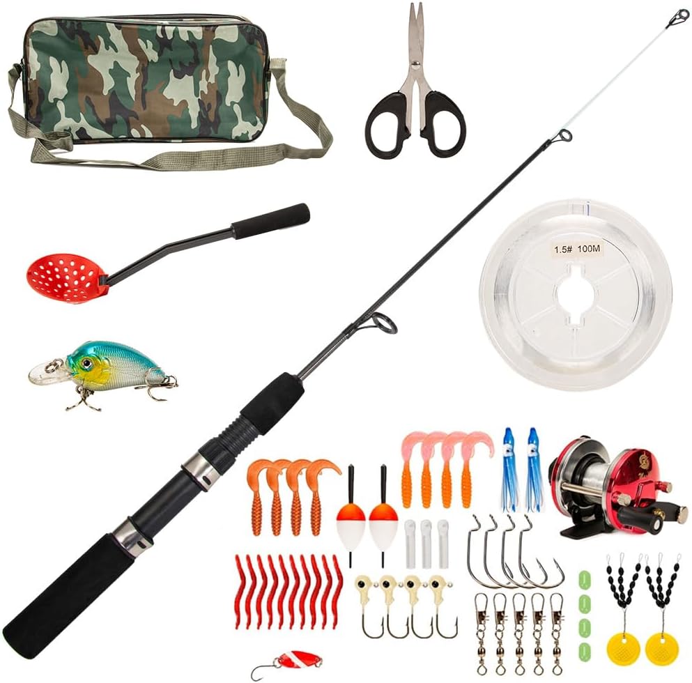 HXYIG 52pcs Ice Fishing Gear Combo includes a versatile ice fishing rod and reel combo perfect for anglers. This complete set provides everything you need for a successful winter fishing experience. With high-quality hooks, lures, and tackle, it’s designed for both beginners and experienced fishermen. Ideal for ice fishing enthusiasts looking for a durable and convenient setup. Stay prepared for your next fishing trip with this all-in-one kit from Angler Arsenal.