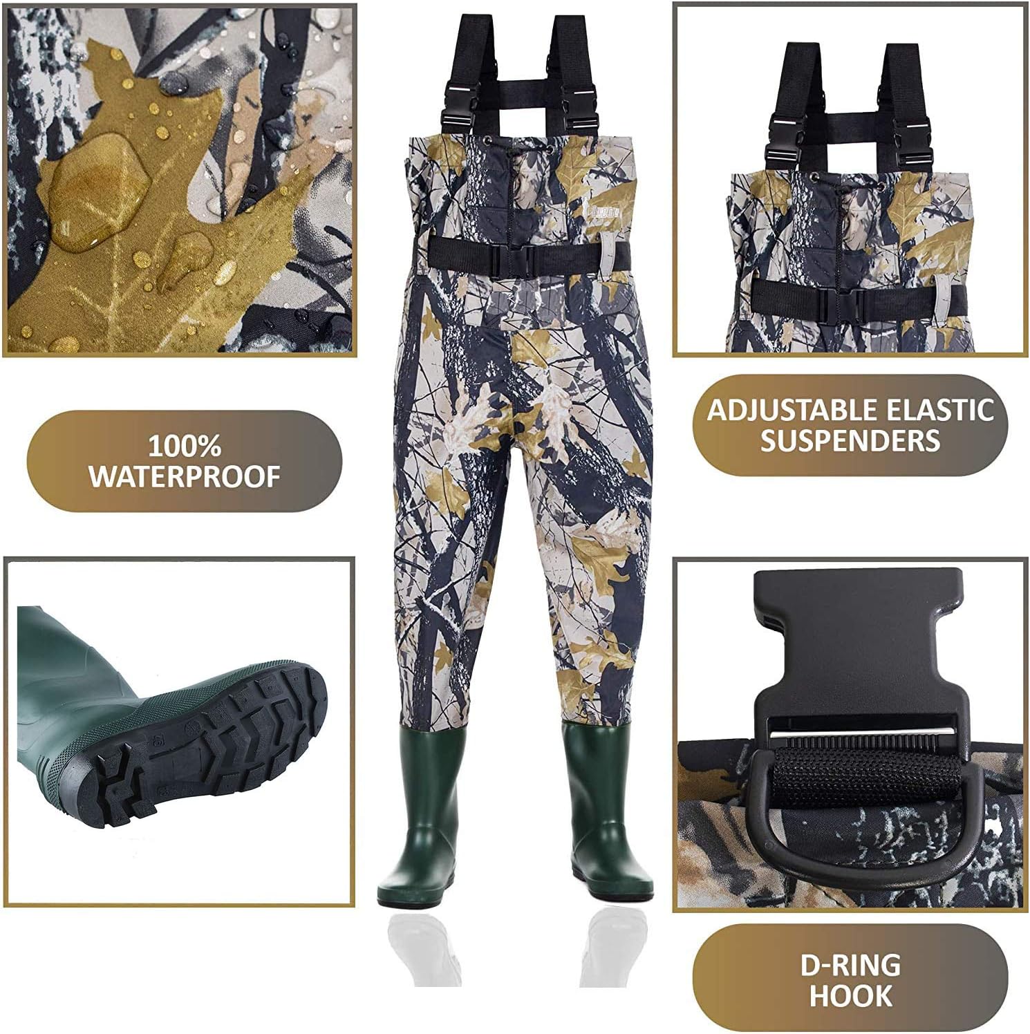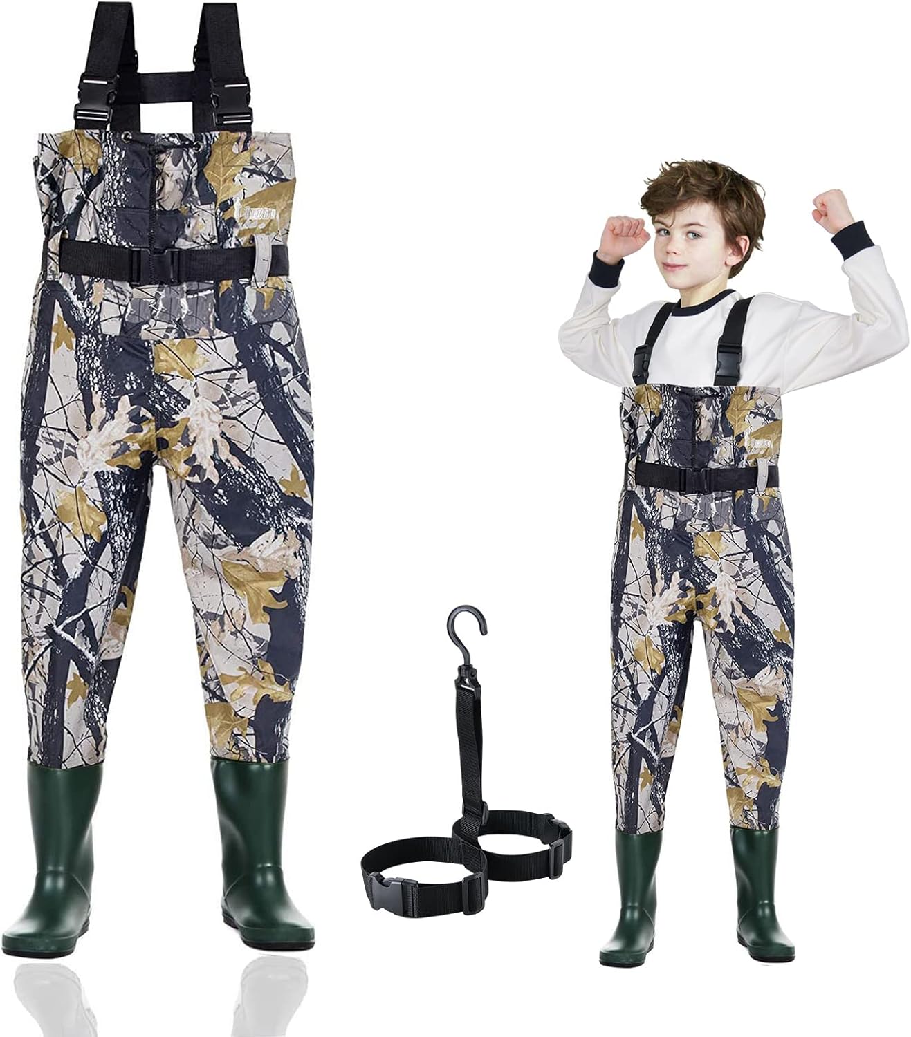 Kids Waterproof Youth Waders are designed for outdoor adventures like fishing and hunting.
