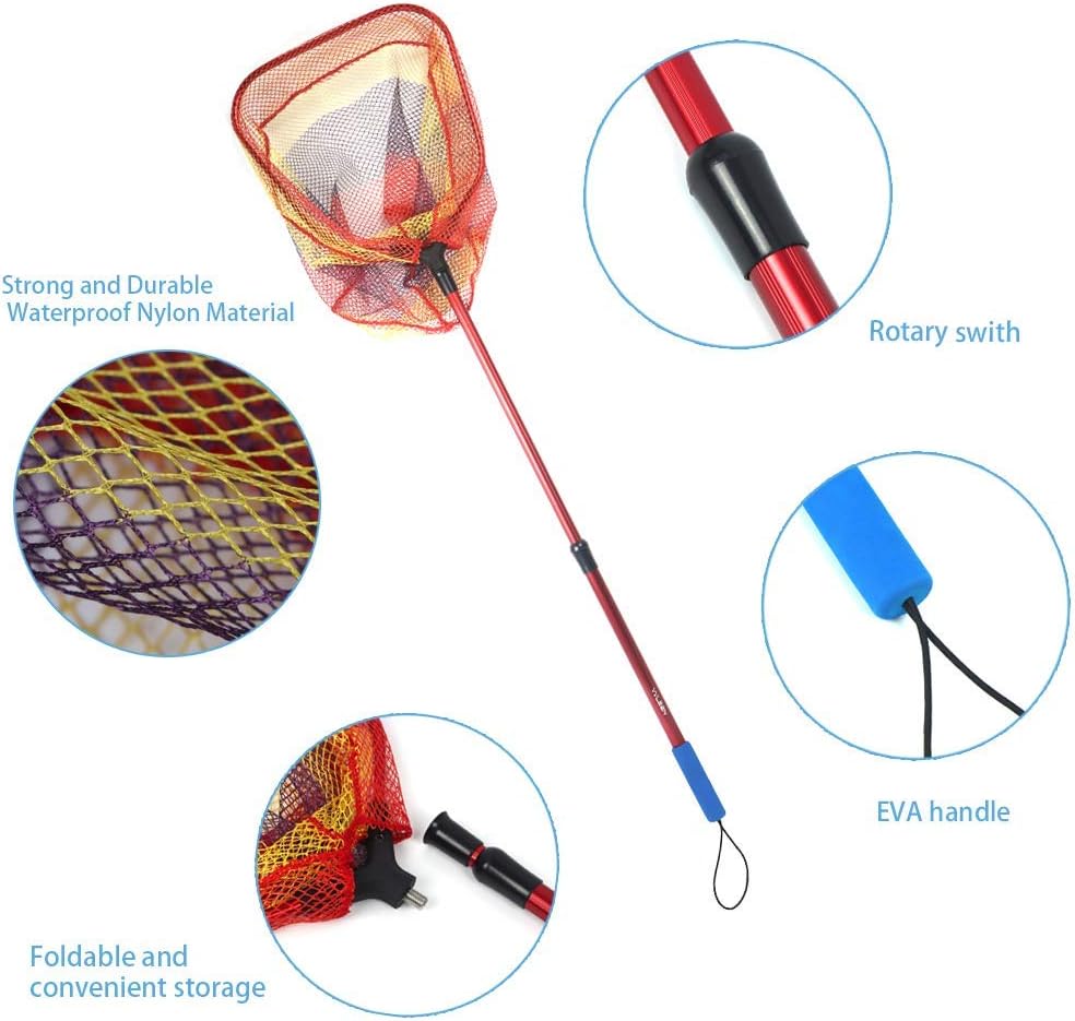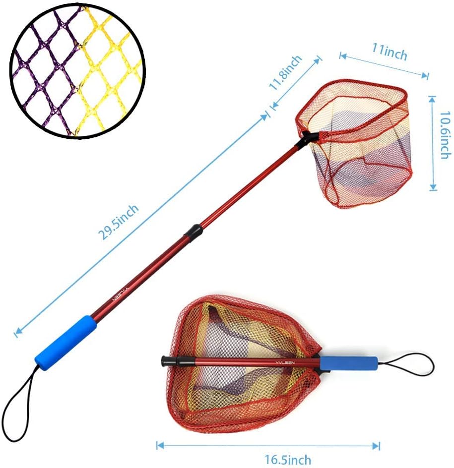 PLUSINNO Kids Fishing Net features a lightweight and telescopic aluminum handle, making it perfect for young anglers. The durable nylon mesh ensures easy catch and release, while the compact design allows for convenient storage. Ideal for outdoor activities, whether fishing or catching butterflies.
