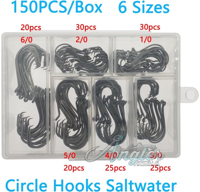 Durable high carbon steel circle hooks for saltwater and freshwater.