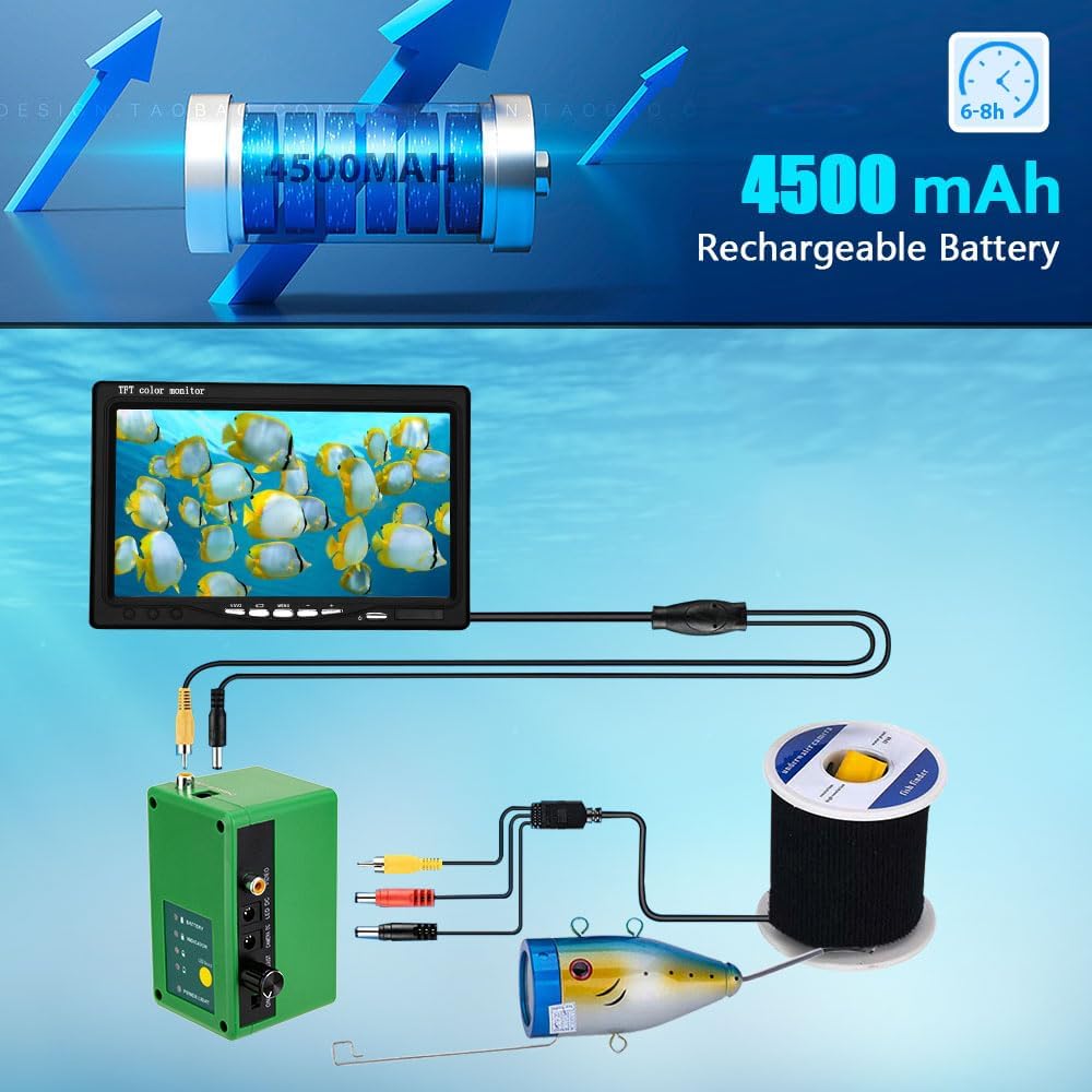 The FishPRO 2024 Upgrade 7-inch Ice Fishing Camera offers superior clarity with a 7-inch display and 50FT cable. With 24pcs LED lights and a 4500mAh battery, it’s perfect for long, cold fishing sessions. Waterproof and portable, this camera provides a reliable fish-finding experience in any environment. Ideal for ice fishing and other outdoor adventures.
