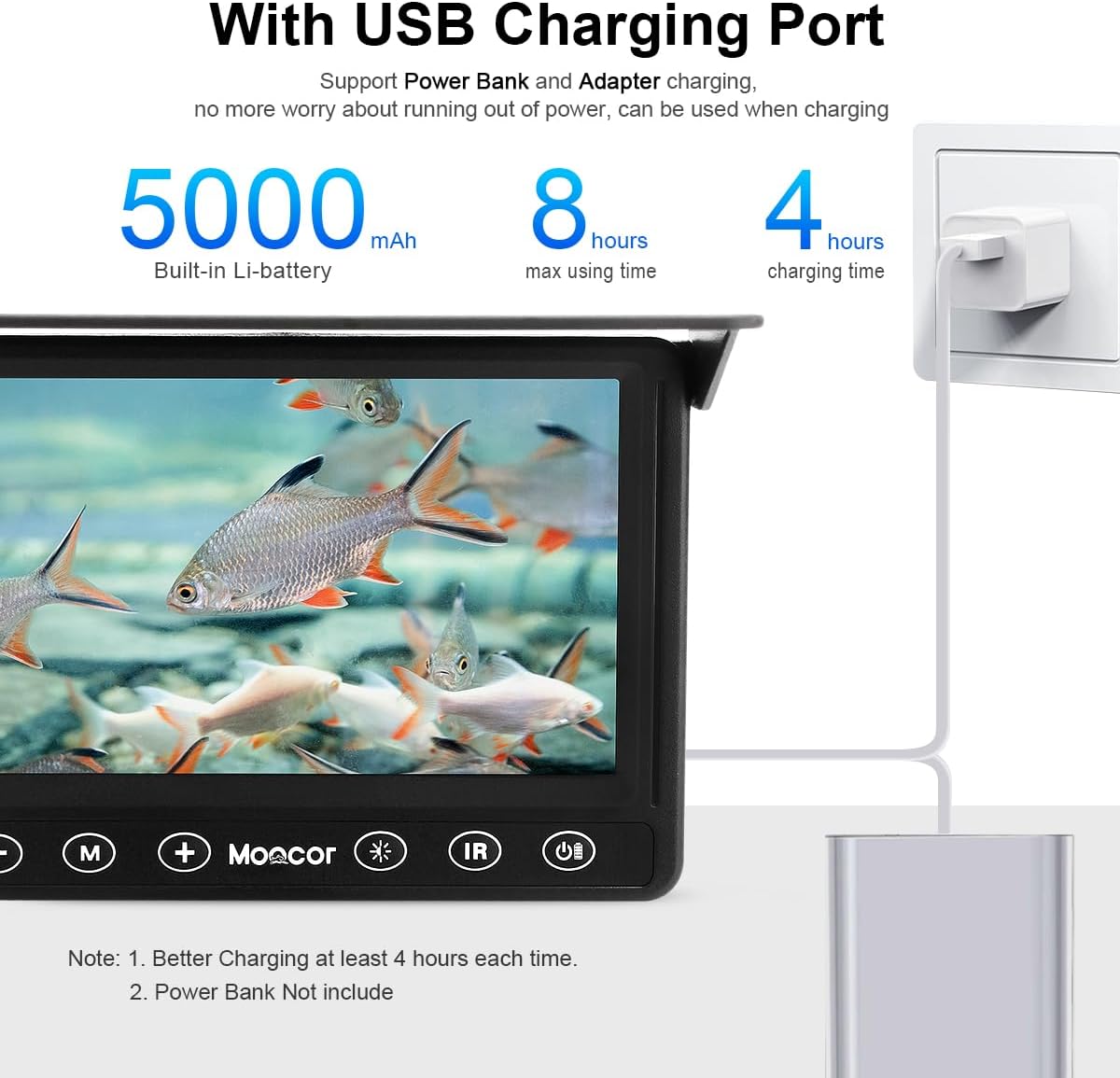 Perfect for ice, lake, and boat fishing with a 10,000mAh battery.