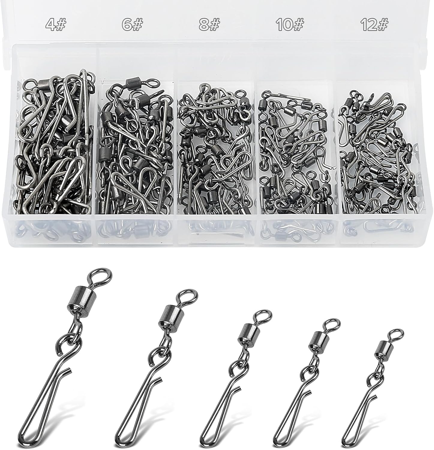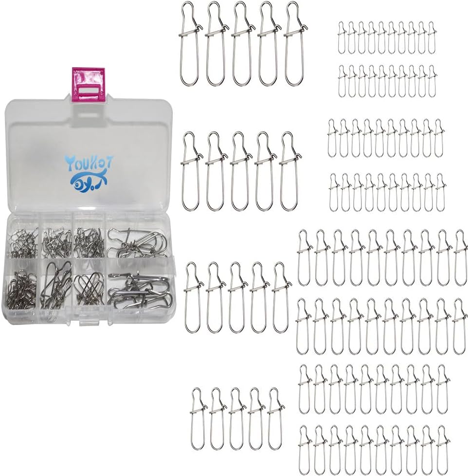 The Youhot Fishing Duo Lock Snaps set includes 100 quick change snaps designed for versatility and ease of use. Available in multiple sizes, these snaps allow for fast and secure attachment of lures and