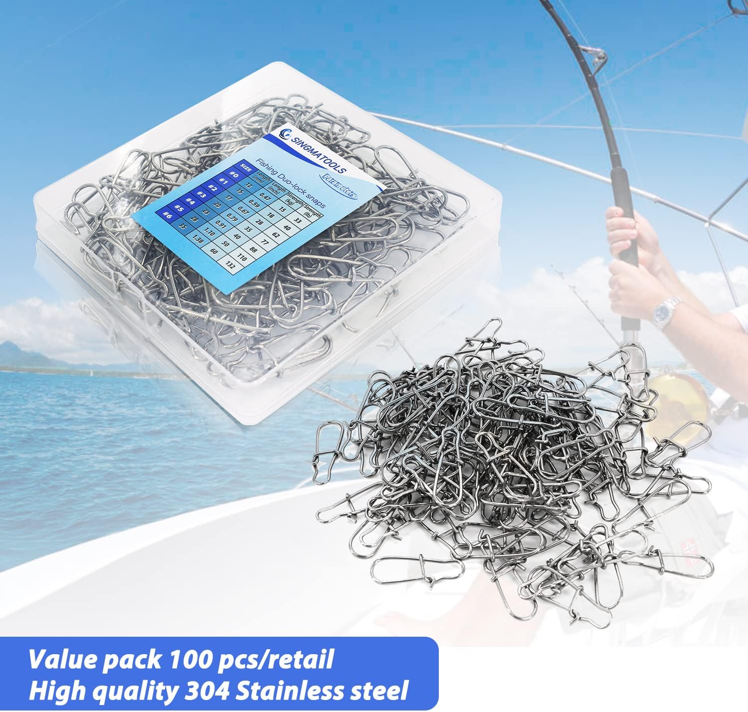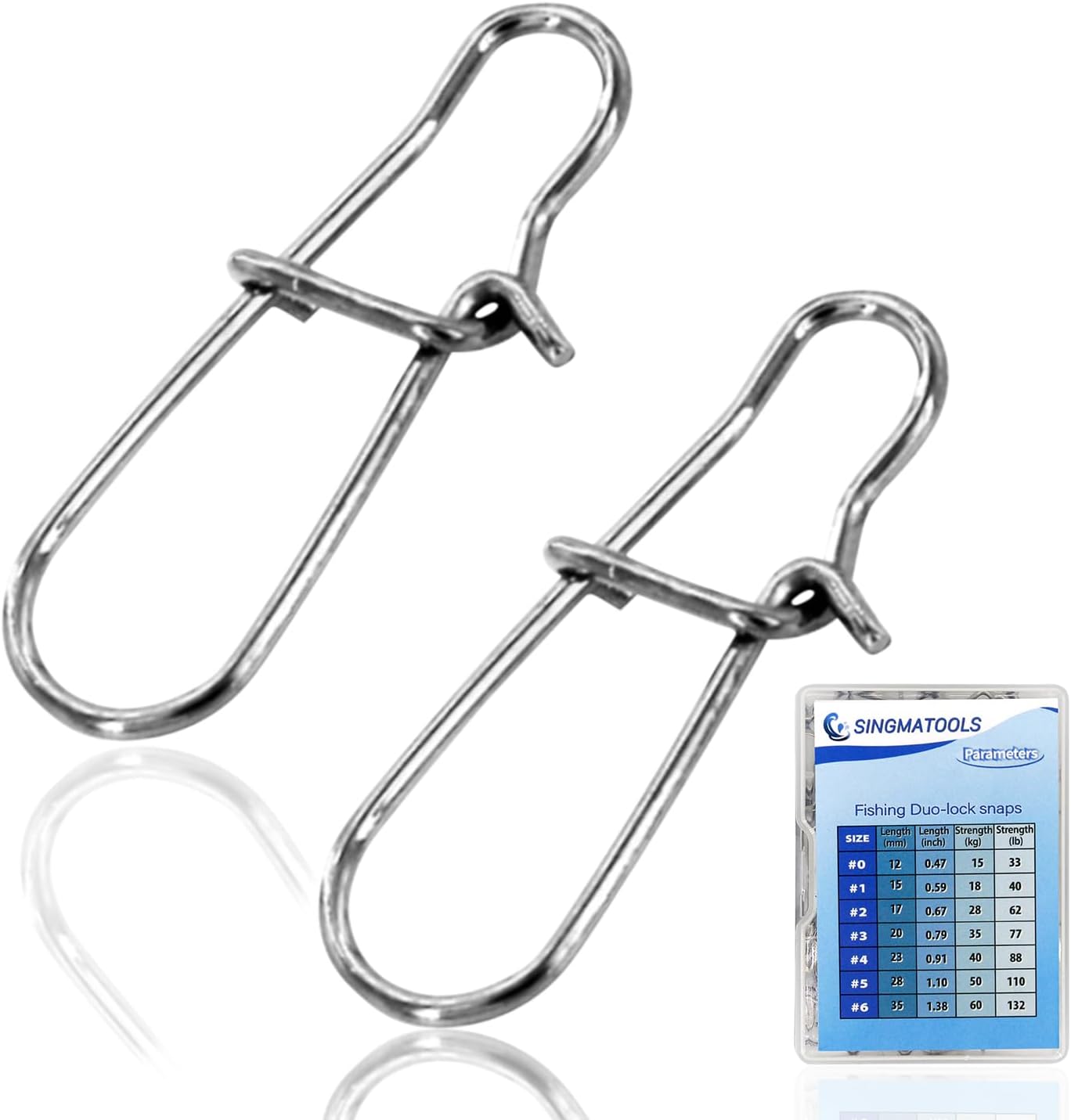 SINGMATOOLS 100 Pack Fishing Duo Lock Snaps by Angler Arsenal are designed for anglers who value efficiency and reliability. These high-quality snaps and clips are perfect for both freshwater and saltwater fishing, allowing for quick and easy lure changes. The durable construction ensures a secure connection, while the duo lock design minimizes the risk of losing your catch. With 100 pieces in the pack, you’ll have plenty of options to enhance your tackle setup. Ideal for all fishing enthusiasts, these snaps are a must-have for optimizing your fishing experience.
