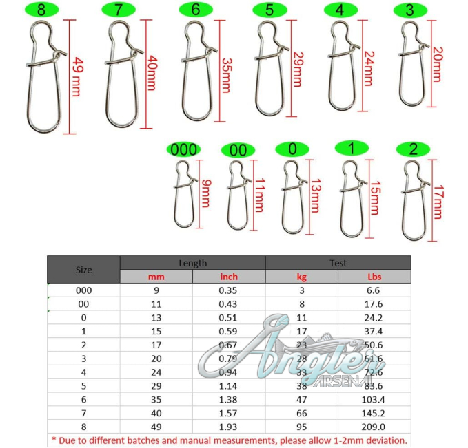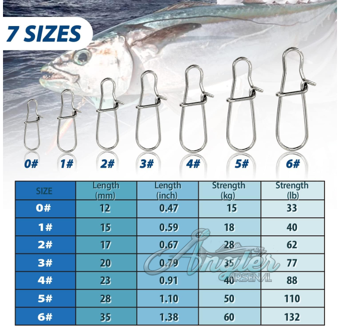 Uncle Sport 100-200pcs Fishing Duo Lock Snaps by Angler Arsenal are designed for versatility and reliability in various fishing conditions. These high-quality stainless steel snaps provide a secure connection for hooks and lures, with sizes ranging from 000# to 8# and a test strength of 7 to 210 pounds. The quick change feature allows for easy lure swaps, making them ideal for both freshwater and saltwater fishing. With a safe lock mechanism, these snaps ensure your tackle stays secure, enhancing your fishing experience and efficiency. Perfect for anglers looking to improve their catch rate.
