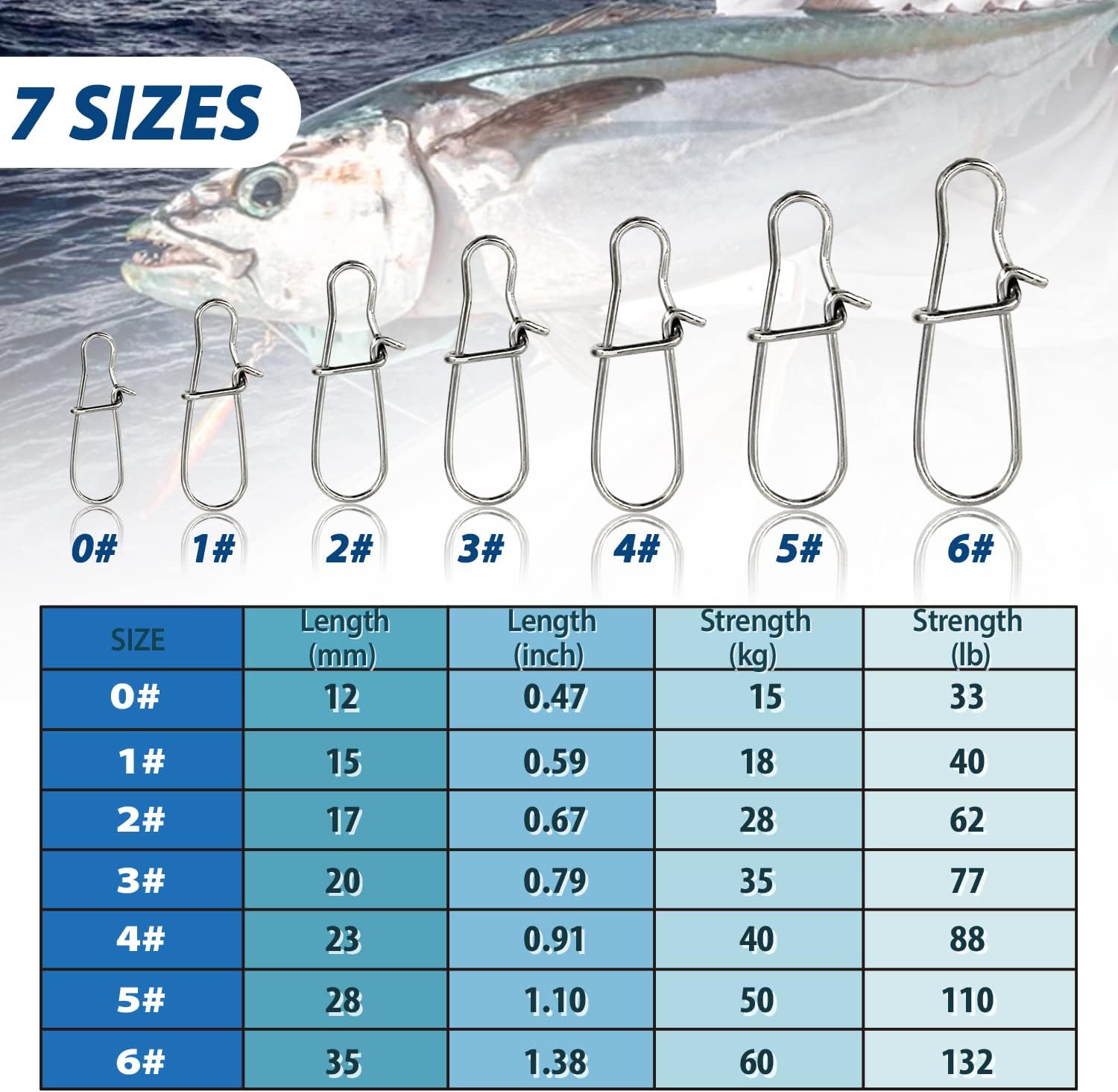 The ENERHIKE Stainless Fishing Snap Quick Change set includes 100 high-strength duo lock snaps designed for durability and reliability. These snaps allow for fast and easy lure changes, making them ideal for both freshwater and saltwater fishing. With a weight capacity ranging from 26 to 220 pounds, they are suitable for various fishing applications. Perfect for anglers looking to enhance their tackle setup with efficient and robust connectors, these snaps ensure a secure connection for all your fishing needs.