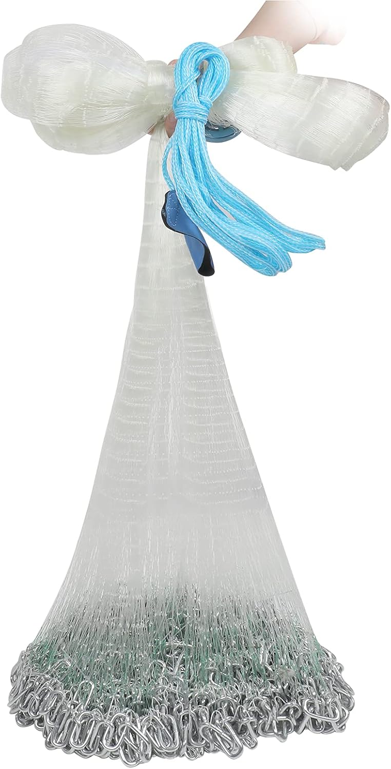 The Drasry Fishing Cast Net is designed for efficient bait trapping in saltwater. Its durable construction ensures long-lasting use. Ideal for anglers seeking a reliable, easy-to-throw net for catching live bait. Features strong mesh for secure catches and quick retrieval. Perfect for saltwater fishing trips.
