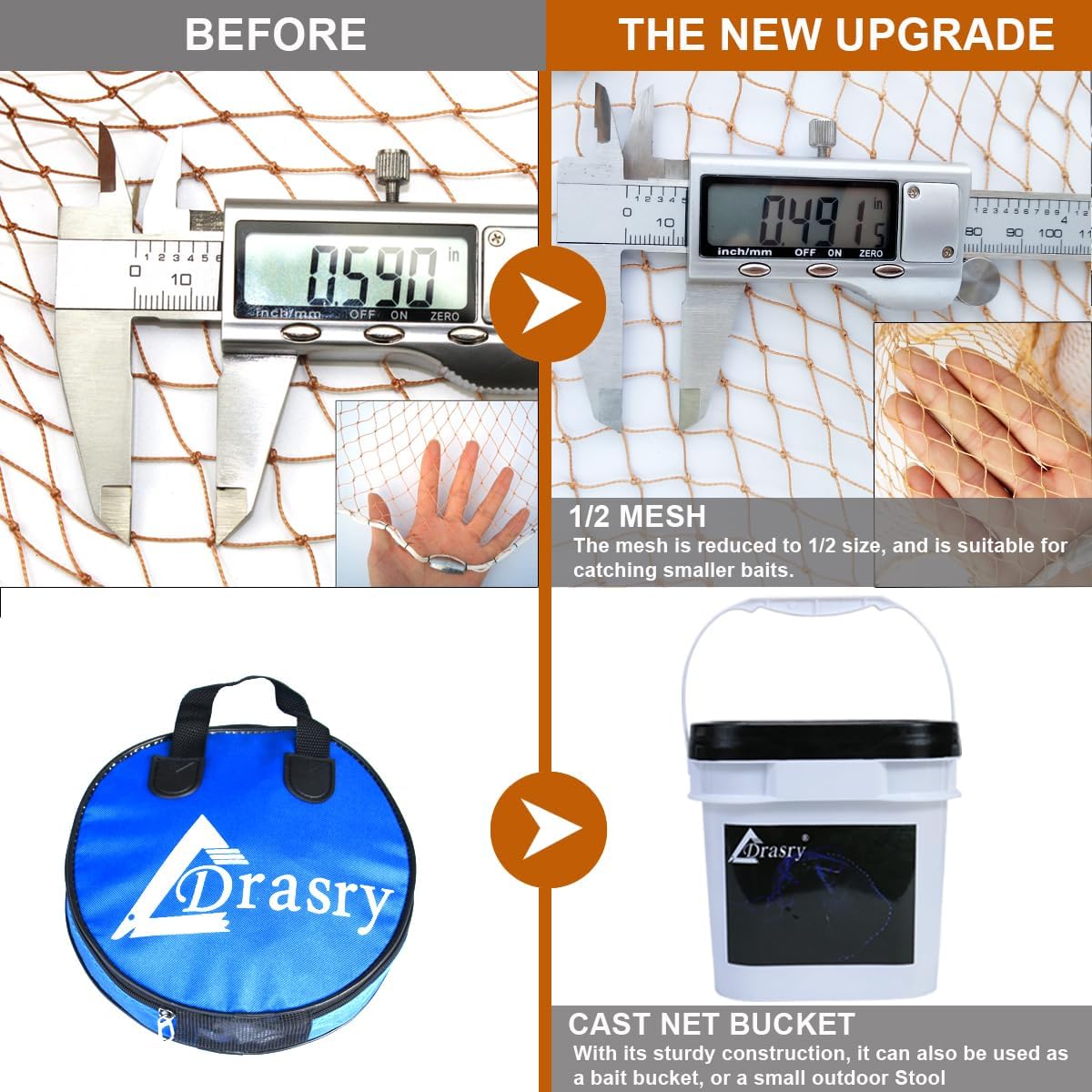 Drasry saltwater cast net designed for efficient shrimp and bait trapping.