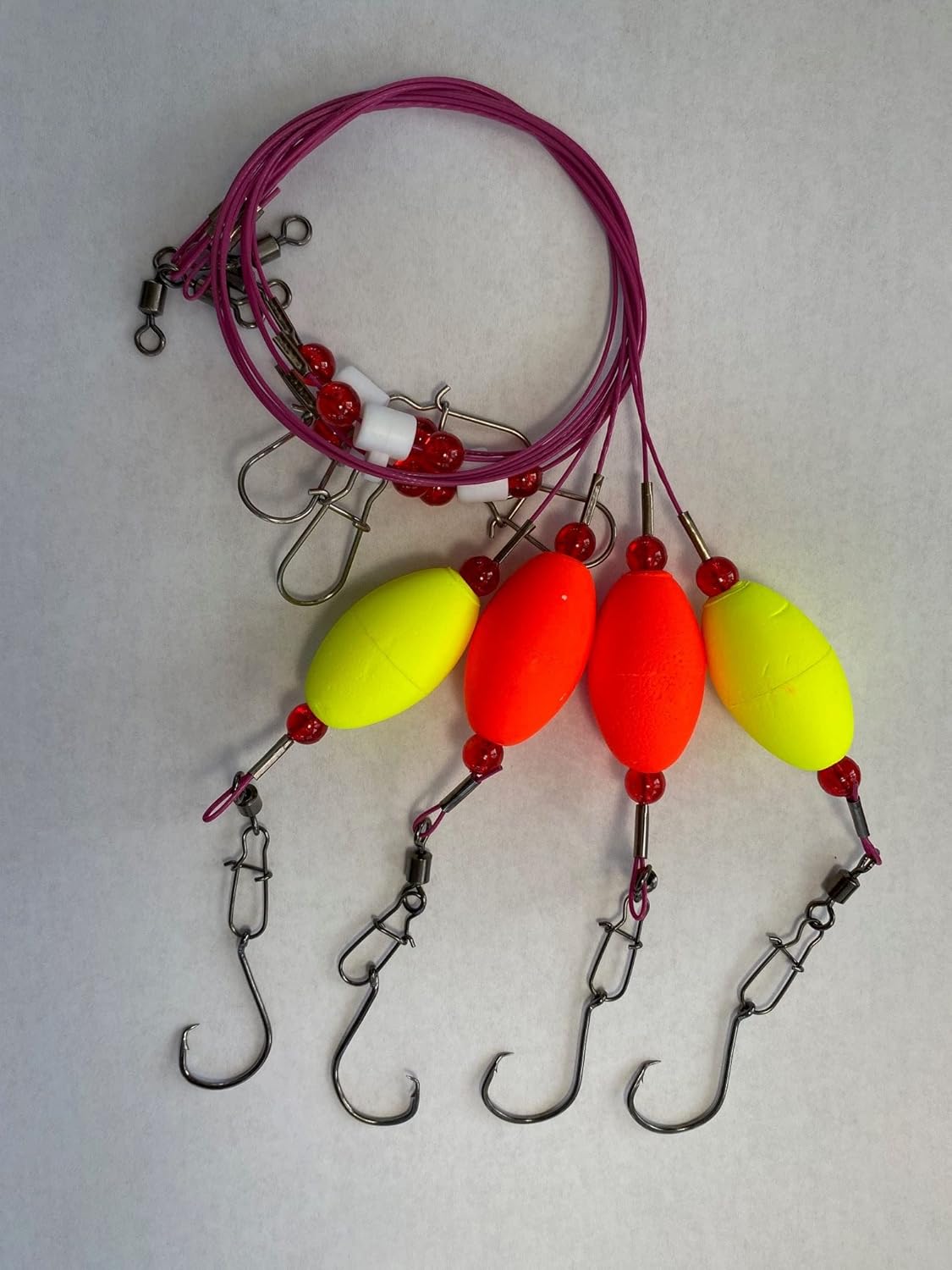 pre-tied dropper loop rigs made with 6 lb tested fishing line.