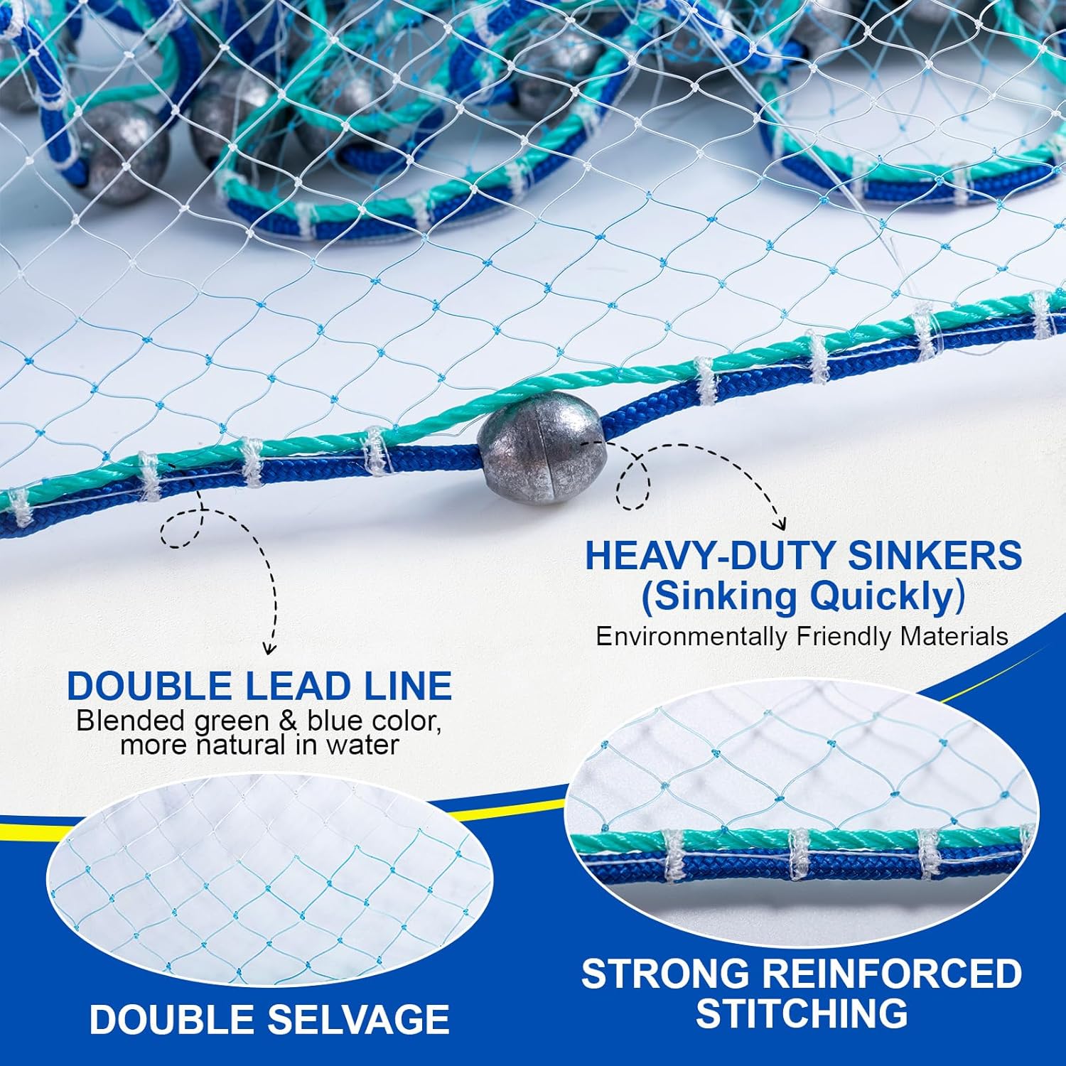 ReeMoo 6FT throw cast net designed for freshwater and saltwater use