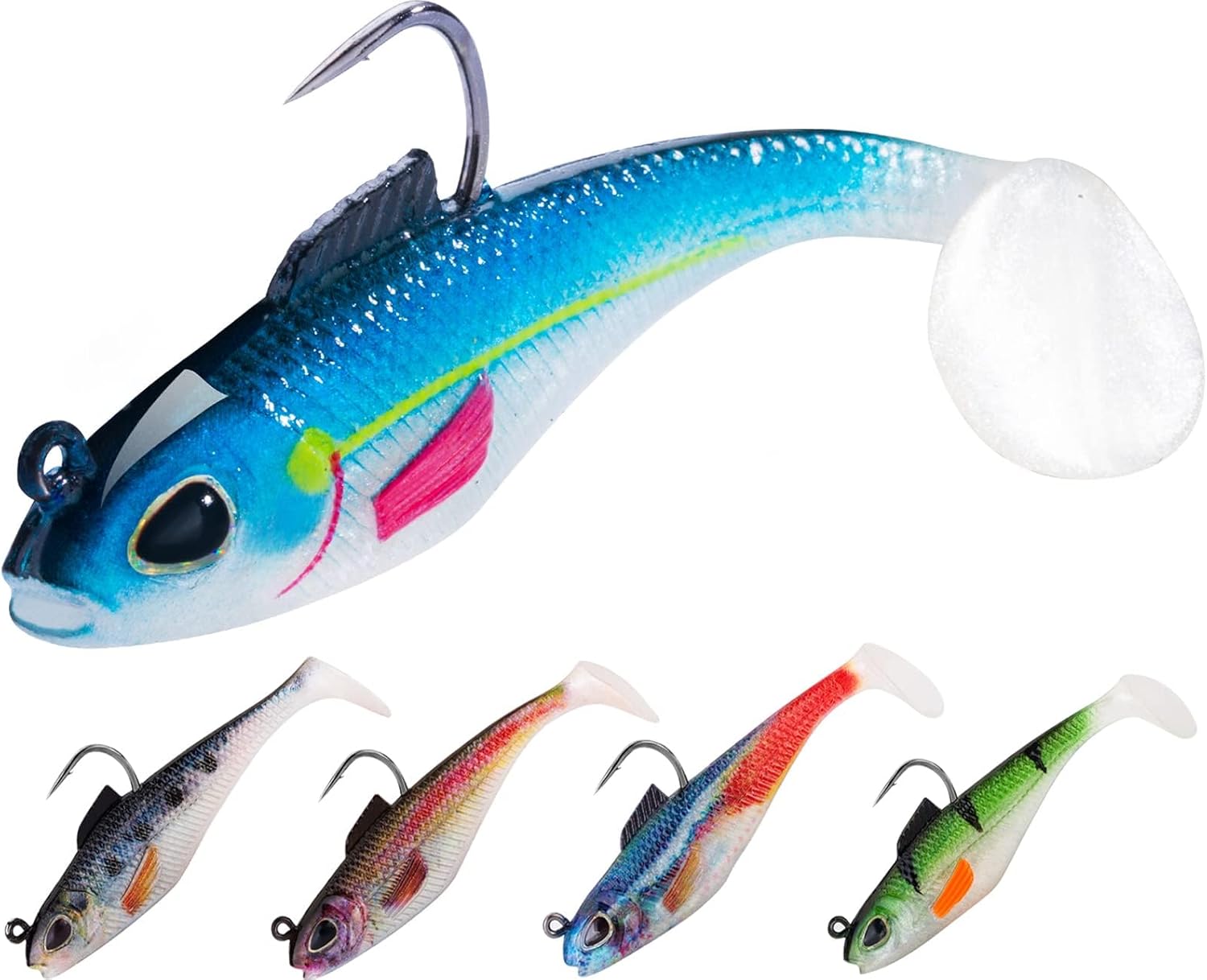 Pre-rigged jig head swimbaits for bass and trout fishing.
