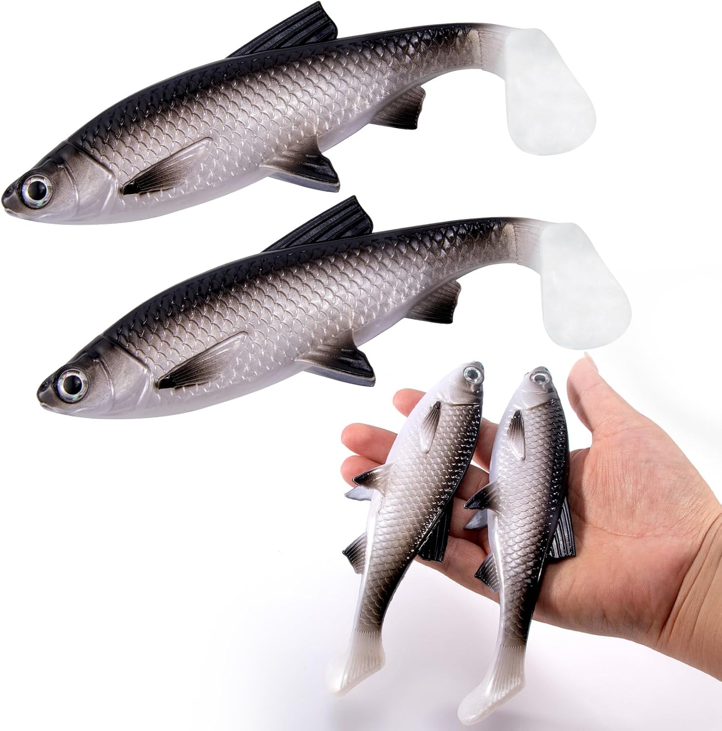 Lifelike paddle tail swimbaits designed for realistic movement. Pre-rigged jig lures for easy setup and effective fishing. Ideal for both freshwater and saltwater fishing. Comes with a tackle box for convenient storage and organization.