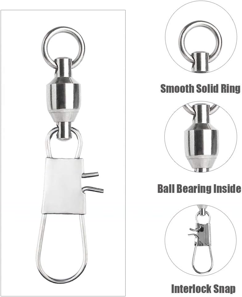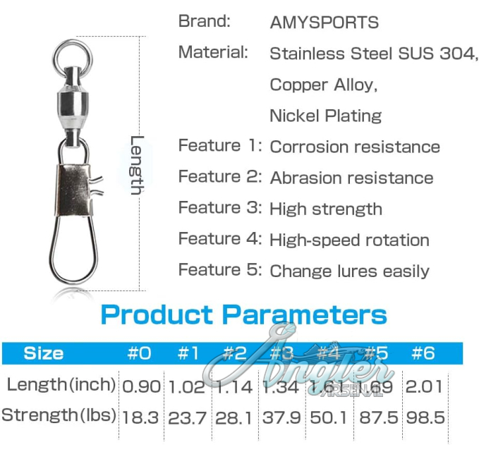 AMYSPORTS Stainless Steel Fishing Swivel Snap 25pcs by Angler Arsenal are engineered for durability and performance in both saltwater and freshwater environments. Each swivel features a ball bearing design that ensures smooth rotation, reducing line twist and enhancing your fishing experience. With a high strength rating of 18.3 pounds, these snaps provide a secure connection for your lures and tackle. The interlock design allows for quick and easy lure changes, making them ideal for active fishing sessions. This pack of 25 pieces is perfect for anglers looking to optimize their tackle setup and improve their catch rate.