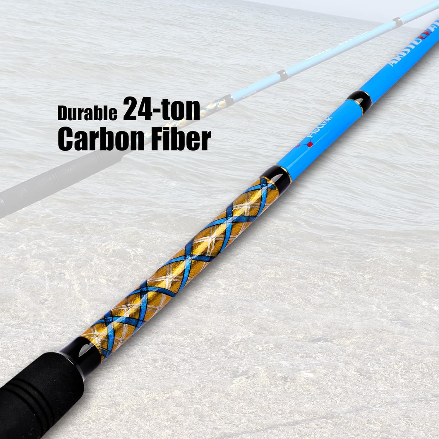 Fiblink 9ft Carbon Fiber Surf Spinning Rod is designed for strength and portability. The medium-heavy power ensures you can handle larger fish with ease. Ideal for surf fishing, this rod combines lightweight construction with durable performance for an exceptional fishing experience.