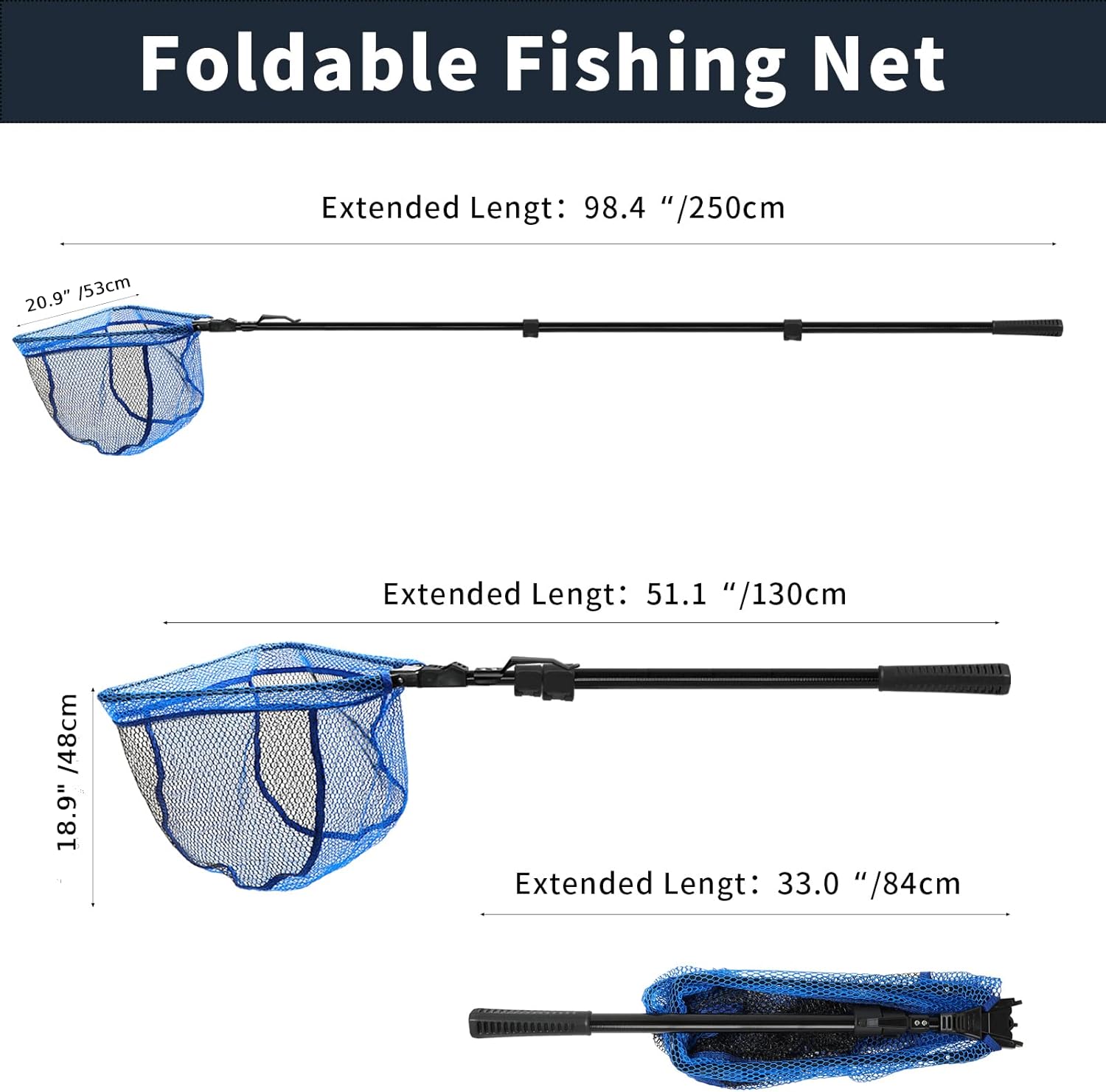 Facikono Large Fishing Net with Angler Arsenal Telescoping Handle