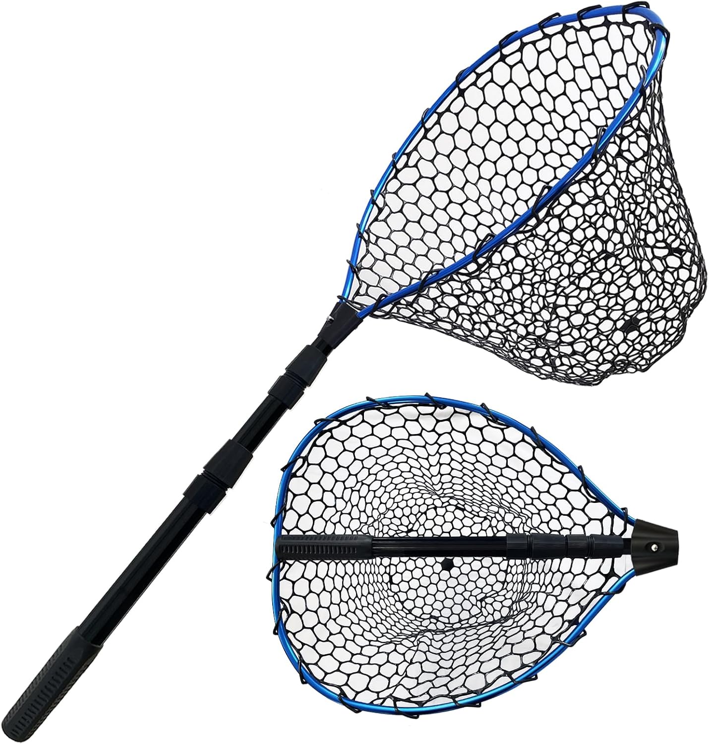 Rubber-coated netting helps protect fish and prevents tangling.