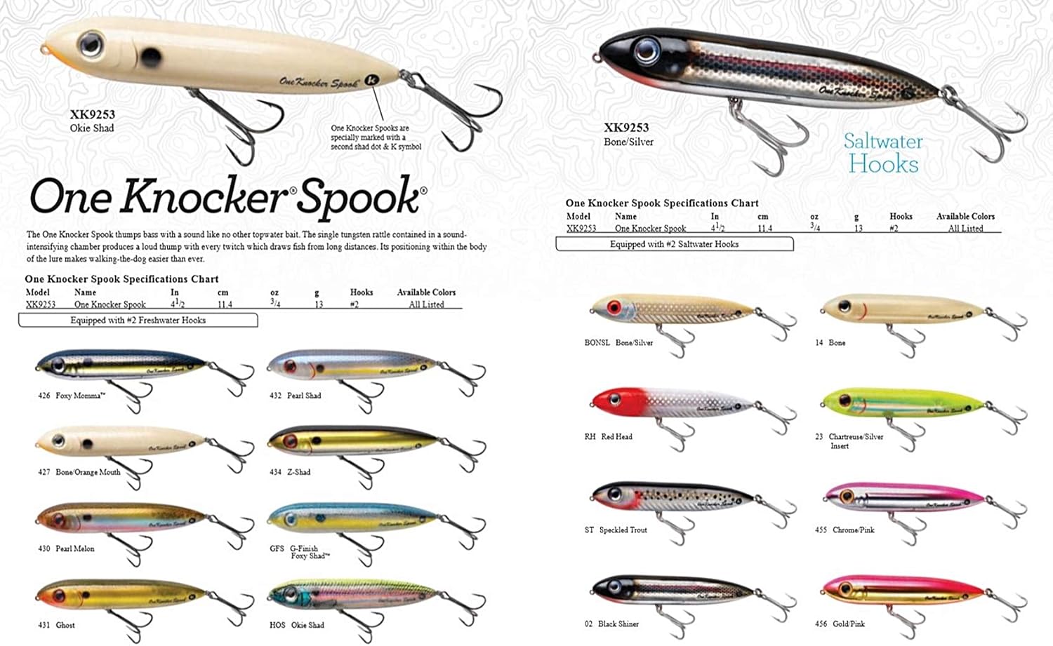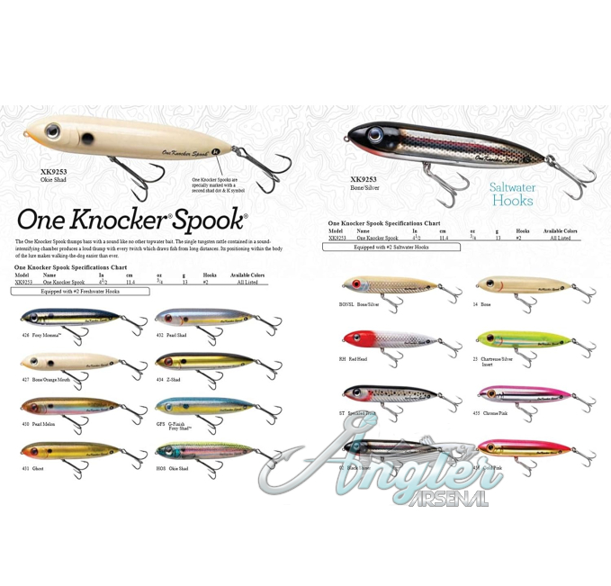 Heddon Angler Arsenal One Knocker Spook Topwater Lure in Bone Orange Mouth is designed for both saltwater and freshwater fishing. Weighing 3/4 ounce, this 4 1/2-inch lure features a unique one-knocker sound that creates a distinct noise to attract predatory fish. Its realistic design and vibrant color enhance visibility, making it an effective choice for targeting species like bass and pike. Built for durability and performance, this topwater lure is a must-have for anglers looking to improve their catch rate and enjoy a successful fishing experience.
