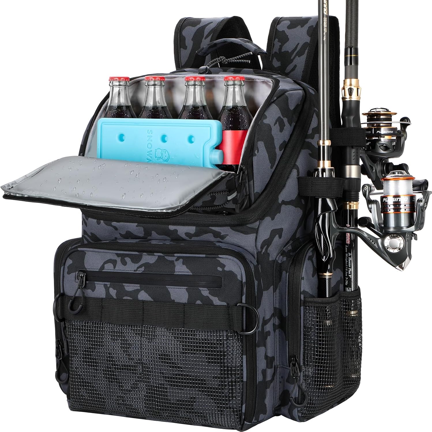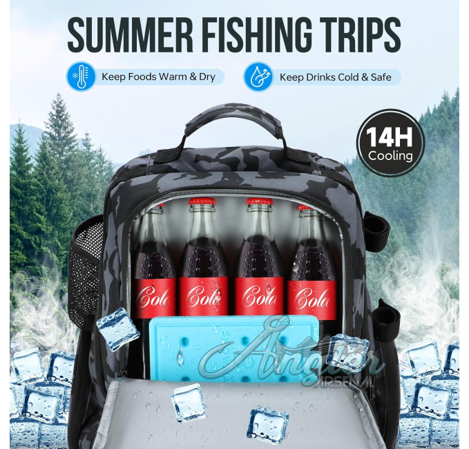 The PLUSINNO Fishing Backpack is designed for the avid angler who needs a reliable and spacious tackle bag. With a generous 42L capacity, this water-resistant backpack features multiple compartments to store all your fishing gear securely. The integrated rod holders allow for easy transport of your fishing rods, making it perfect for fishing trips, camping, and hiking. Crafted from durable materials, this backpack is built to withstand the elements while keeping your equipment organized and accessible. Ideal as a thoughtful gift for fishing enthusiasts, this versatile backpack is a must-have for outdoor adventures from Angler Arsenal.