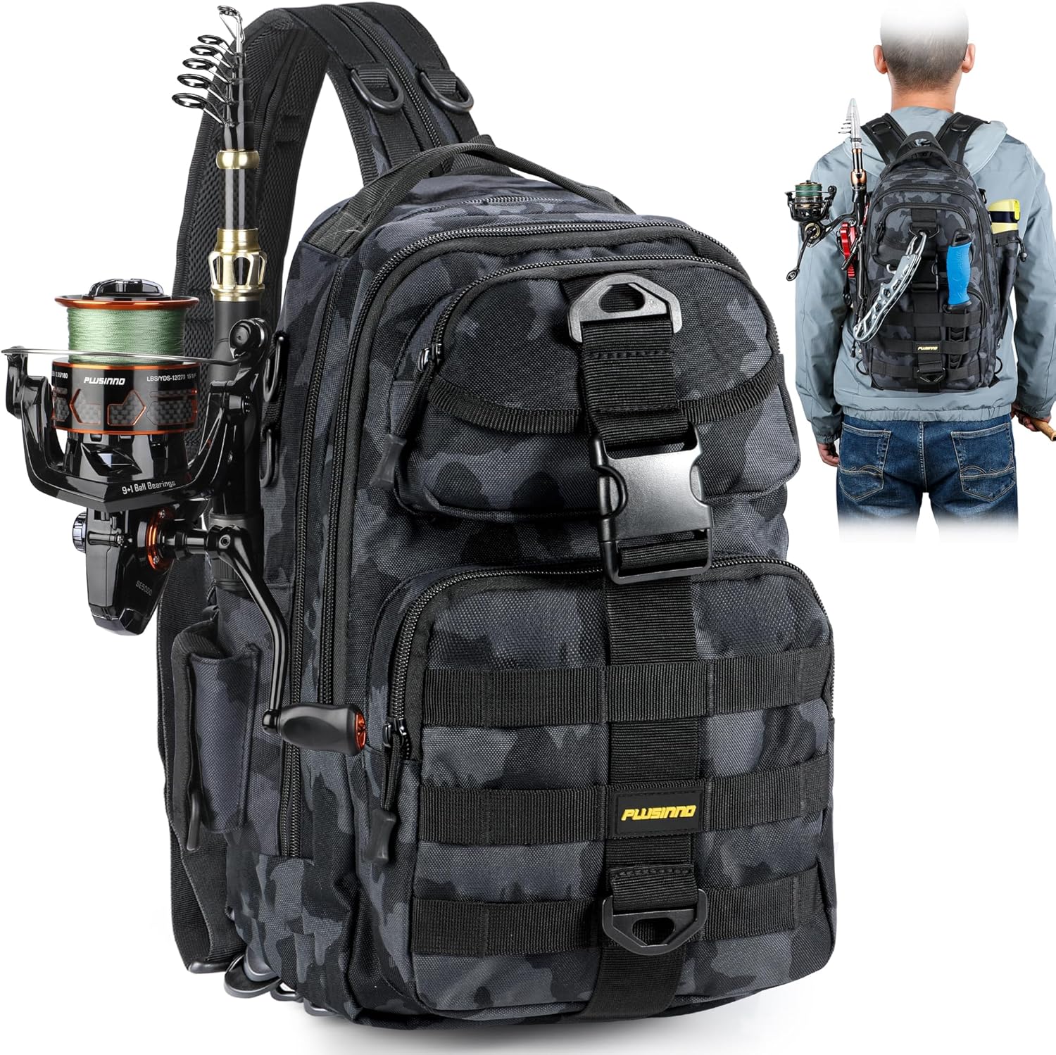 The PLUSINNO Fishing Backpack Tackle Bag is the perfect companion for anglers seeking a durable and organized storage solution. This water-resistant backpack features a dedicated rod holder, allowing you to transport your fishing gear with ease. Designed with multiple compartments, it provides ample space for tackle, tools, and personal items, ensuring everything is easily accessible. The ergonomic design and padded straps offer comfort during long trips, making it ideal for fishing, hiking, or camping. Stay prepared for your next adventure with this versatile backpack from Angler Arsenal.