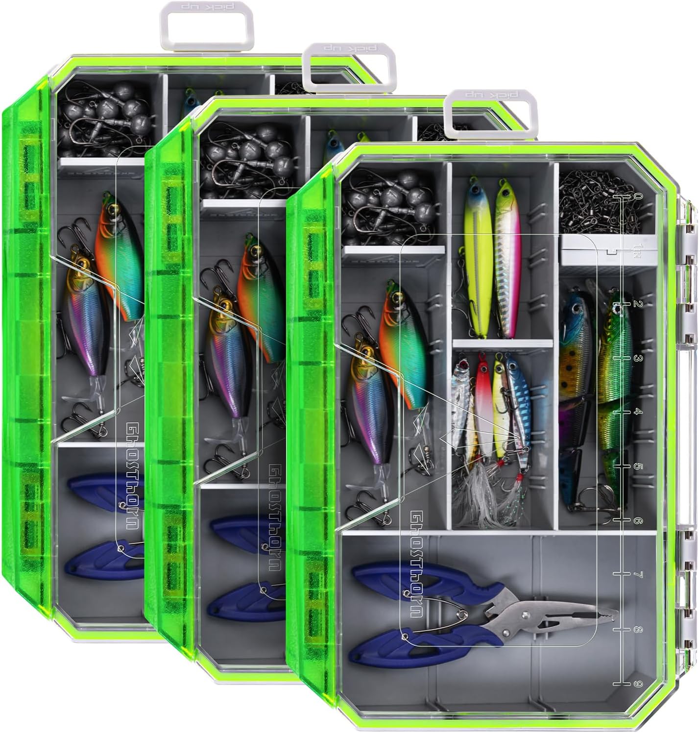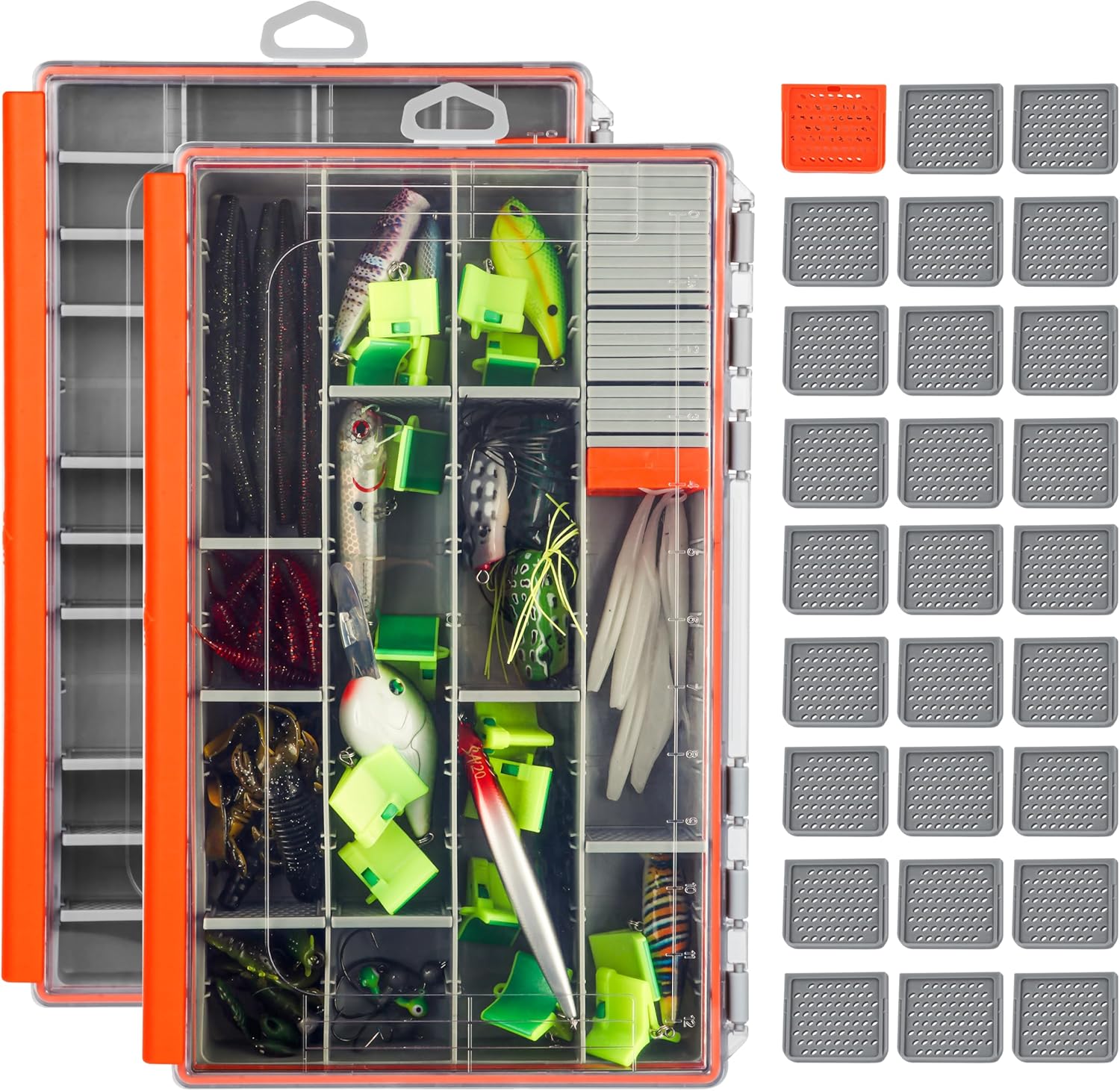 Removable dividers allow for customizable lure and bait organization.