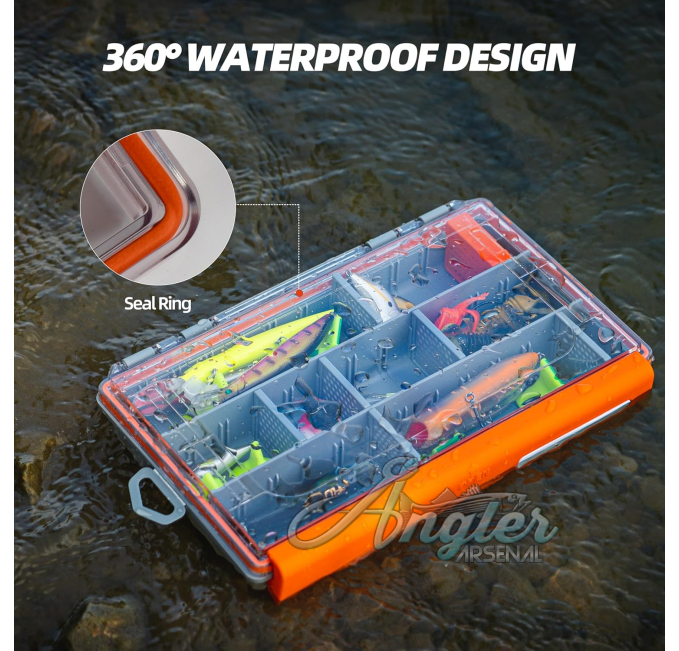 The Plano 3700 Series Waterproof Tackle Box from Angler Arsenal provides secure and versatile fishing gear storage. Features adjustable dividers for custom organization. Durable cam-action latches and O-ring seal ensure watertight protection. Perfect for anglers needing a reliable tackle solution.