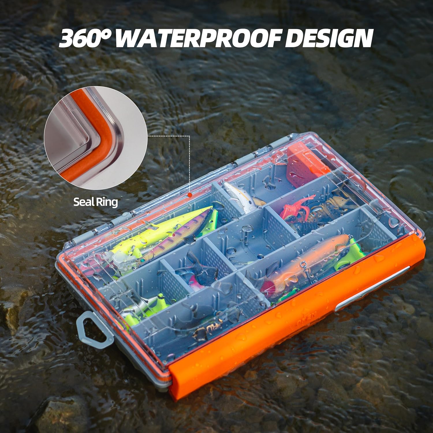Wonderjune Waterproof Tackle Box offers secure storage for fishing gear.