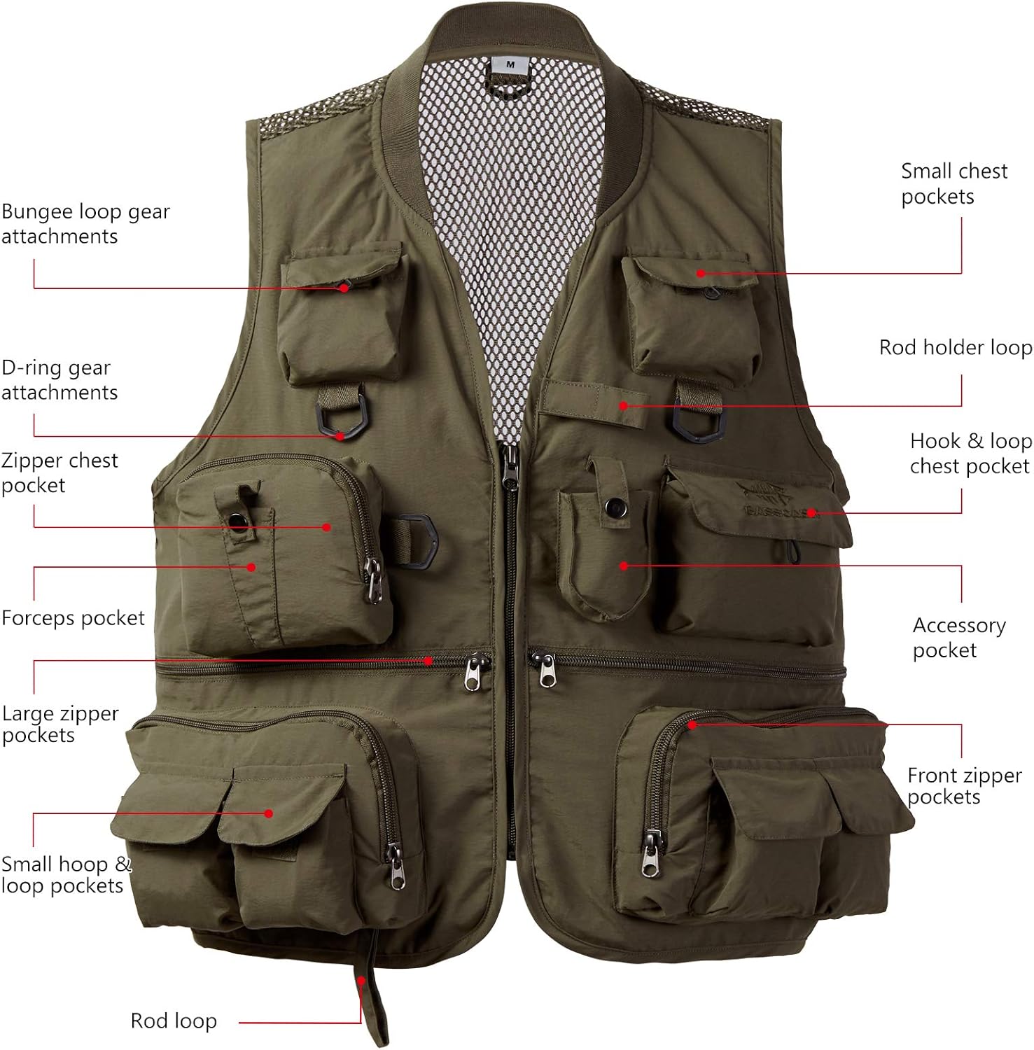 BASSDASH Utility Fishing Cargo Vest Multi Pocket Mesh Back Angler Arsenal