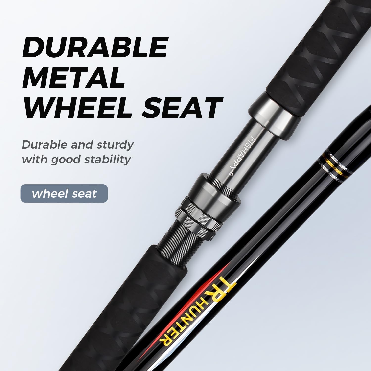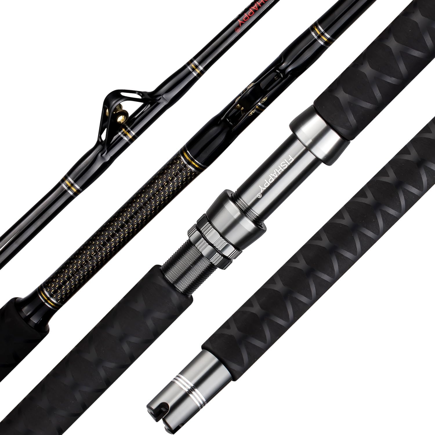 The FISHAPPY 6ft Saltwater Trolling Rod is designed for big game fishing with a heavy-duty build and roller guides. Perfect for offshore adventures, this rod provides ultimate durability and performance for challenging conditions. Ideal for anglers looking for a robust, reliable tool to handle larger catches. Perfect for heavy-duty trolling with 50-80 lb line capacity.
