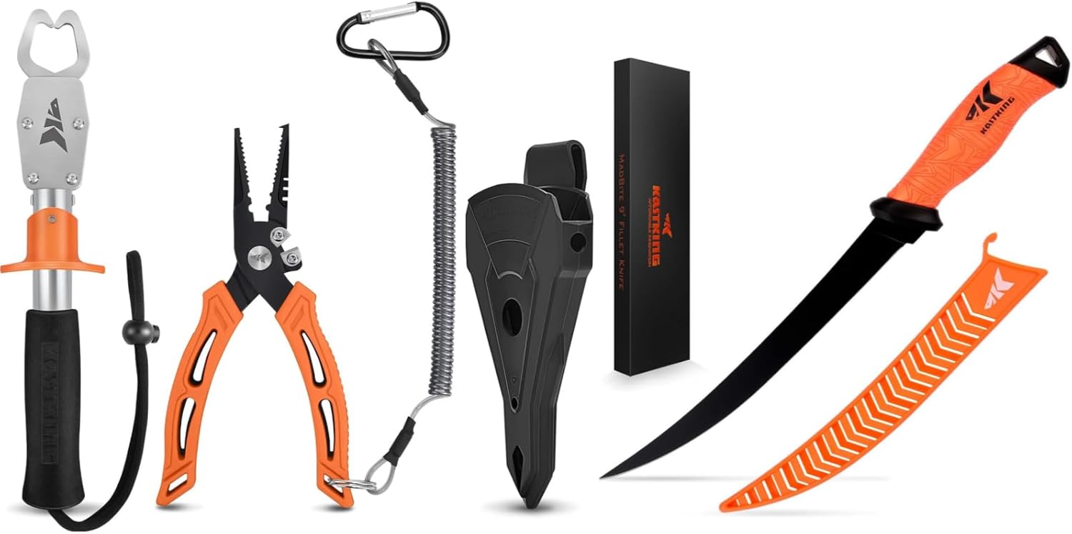 The Angler Arsenal Portable Fish Gripper Tool provides a secure hold while handling fish. Lightweight and compact design for easy portability. Ideal for anglers needing a reliable grip tool for safe catch handling. Durable construction ensures long-lasting use.